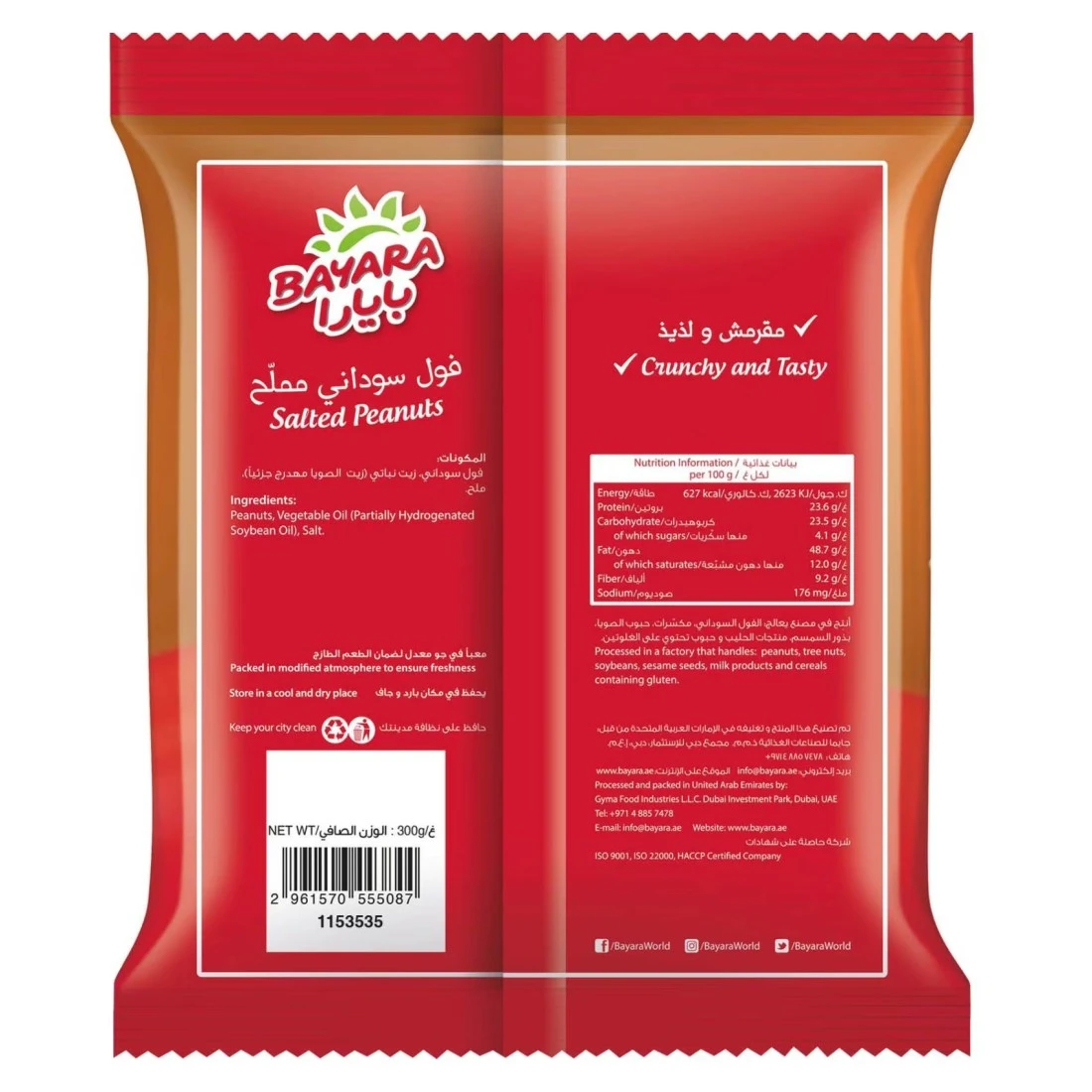 Bayara Snacks Peanuts Salted is a 300g pack of roasted and salted peanuts. These crunchy and flavourful nuts are a popular snack option for all occasions. They are packed with essential nutrients like protein healthy fats and fiber making them a healthy and satisfying option. Whether you enjoy them on their own or use them in various recipes Bayara Snacks Peanuts Salted are a delicious and nutritious choice for peanut lovers.