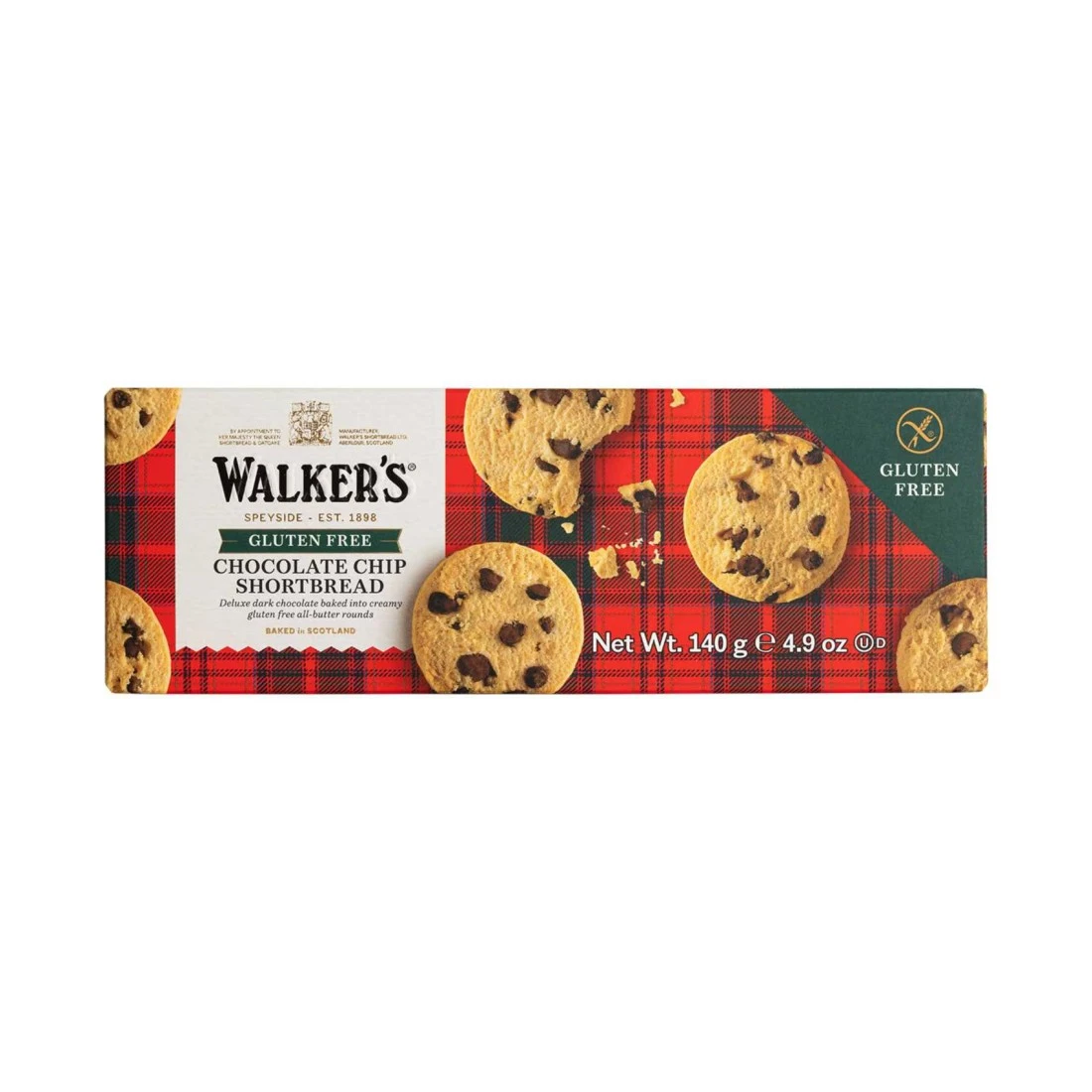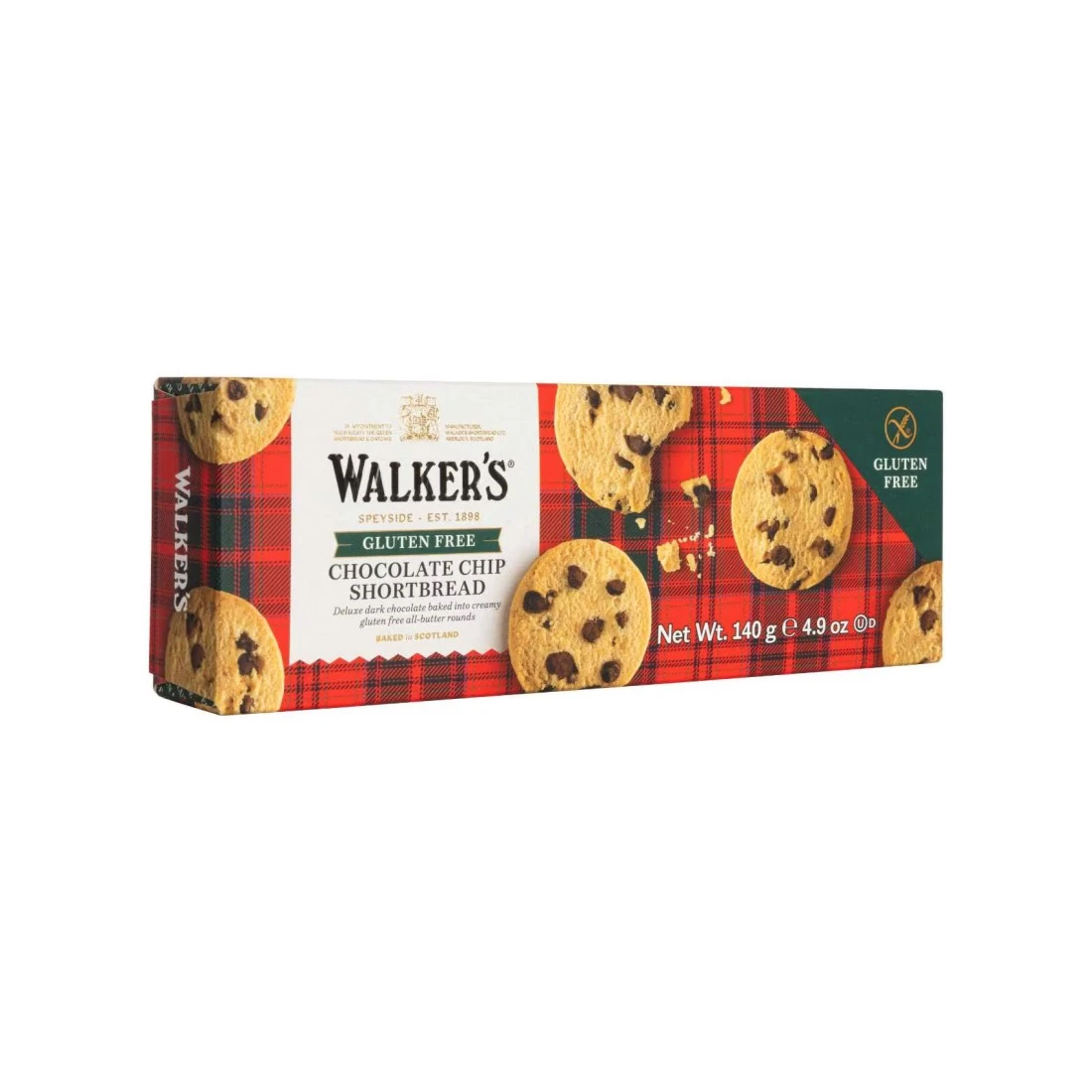 Walkers GF Pure Butter Chocolate Chips Shortbread is a delicious gluten-free treat made with the finest quality ingredients. These buttery shortbread cookies are studded with rich chocolate chips creating a perfect balance of sweet and savoury flavours. They are made with real butter giving them a rich and indulgent taste that is sure to satisfy any sweet tooth. Enjoy these cookies as a snack with a cup of tea or coffee or serve them as a sweet treat for guests. Perfect for those with gluten sensitivities these Walkers shortbread cookies are a delightful gluten-free alternative to traditional shortbread.
