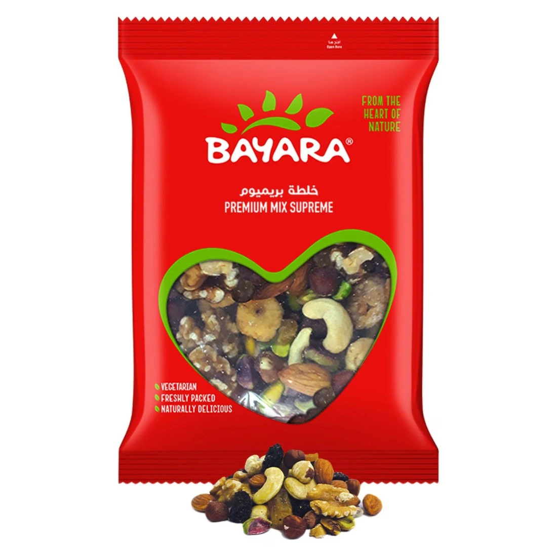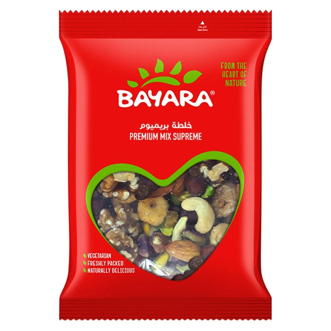 - A delicious combination of raisins, figs, pistachio kernels, walnuts, cashews, almonds, hazelnuts. Bayara Supreme mix is a healthy snacking option as well as a natural energy booster.