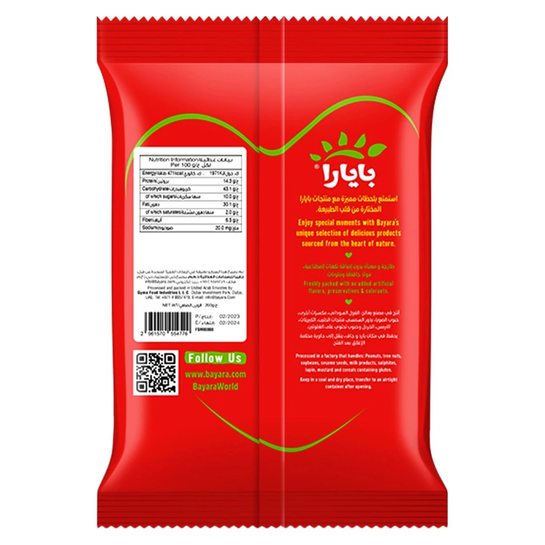 Bayara is established in UAE since 1992. Bayara brings natural ingredients from around the world to your table through its wide range of dried fruits, dates, nuts, spices, herbs and pulses.
