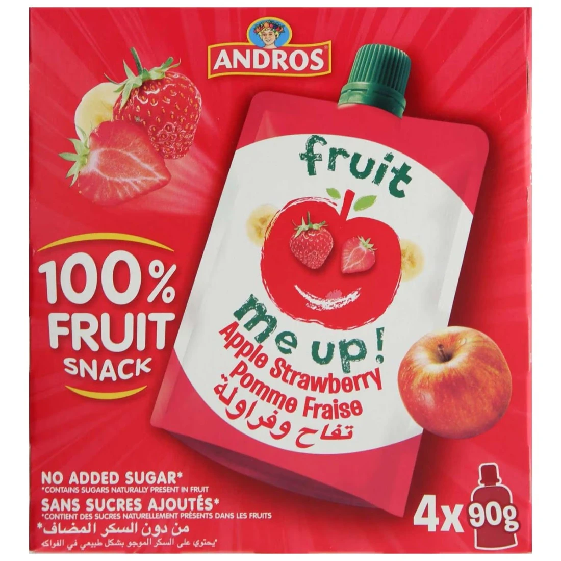 Andros Fruit Me Up! No Added Sugar Apple and Strawberry Fruit Snack, 90g Pack of 4