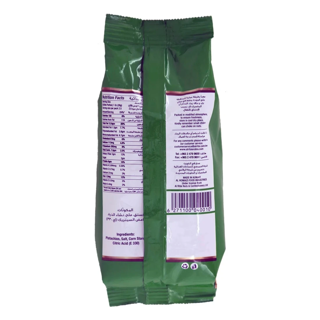ingredients : Pistachios, Salt, Corn Starch, Citric Acid(E330)