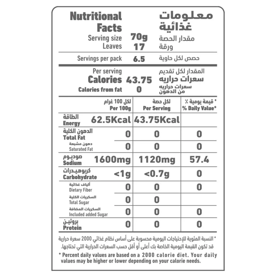 Al Alali Fancy Vine Leaves are a delightful culinary ingredient, known for their tender texture and unique flavour that enhances a variety of dishes. With a moderate fat content, these vine leaves are perfect for creating healthy meals, such as stuffed grape leaves or as a flavourful addition to salads. Each pack contains 908 grams, providing ample quantity for multiple servings or recipes. These vine leaves are carefully selected and preserved, ensuring freshness and quality, making them an excellent choice for both home cooks and professional chefs looking to elevate their dishes.