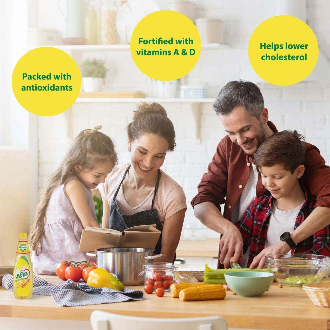 Introducing Afia's Corn Oil, the ultimate culinary ingredient that enhances your cooking experience. From careful sourcing of premium corn kernels to meticulous processing, this oil is crafted exclusively to preserve the corn's natural richness and sweet flavour, making it the perfect ingredient to complement a wide array of dishes. This Pure Corn Oil is a trusted choice, recommended by nutritionists for its health benefits. Perfect for vegetarians and non-vegetarians, it's high in antioxidants and fortified with vitamins A and D, promoting overall well-being. Being a versatile oil with a high smoke point from between 230–238 °C, it's perfect for a wide range of recipes. Its flavour and ability to withstand high temperatures make it the preferred choice for high-heat, all-purpose cooking. Explore Afia's complete range of cooking oils, from sunflower oil to canola oil, each offering alternative flavour profiles that open up a world of culinary possibilities in your kitchen. Elevate your cooking and embrace a healthier lifestyle with Afia's Corn Oil today!