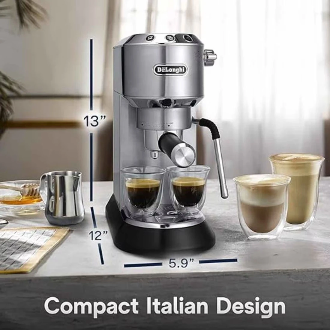 DeLonghi Dedica Arte Espresso Espresso Coffee Maker Machine EC885.M Metal 1.1L