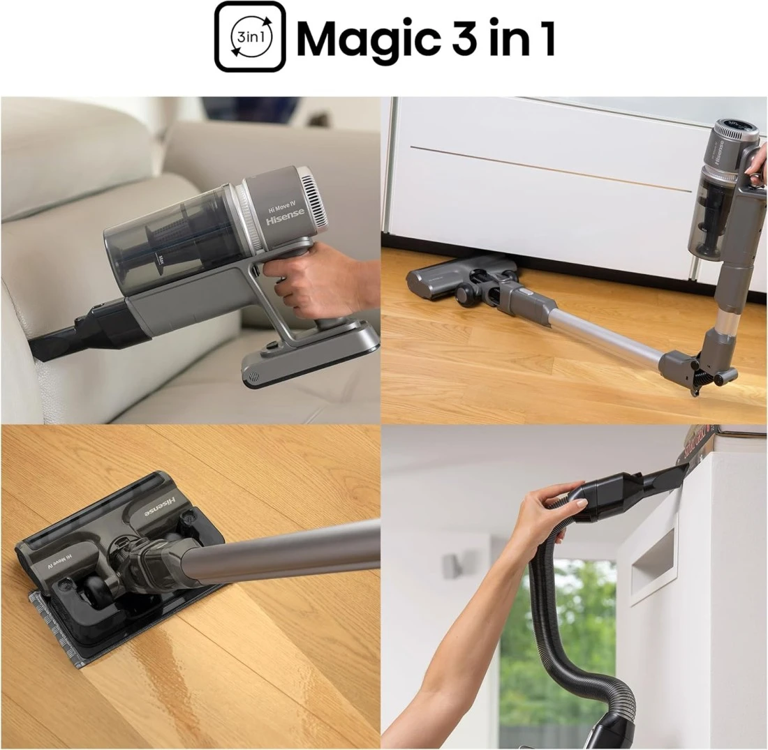Hisense HVC6464A Cordless Broom Vacuum Cleaner, Magic 3 in 1, Long Runtime, Magical Transformation, Washable Filter, Brushless Motor, HVC6464A