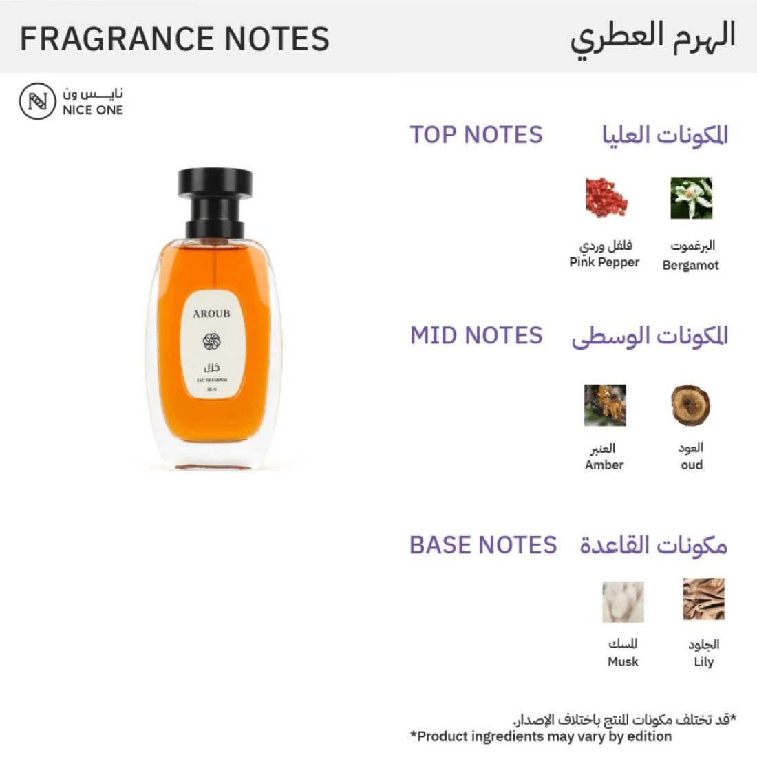 - Middle Notes: Oud, Amber