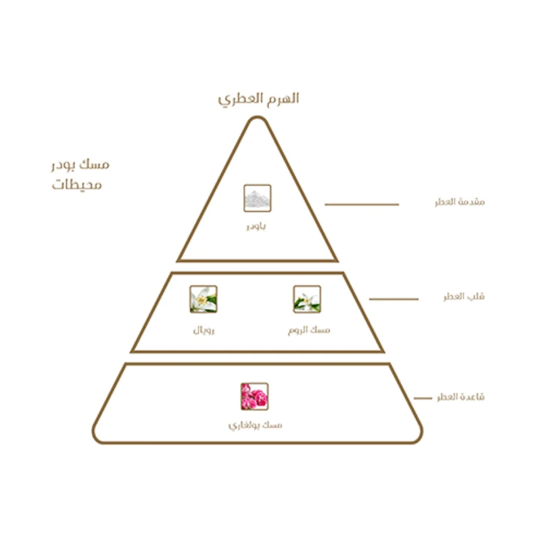 Albdah Oud Misk Powder Hair Mist:A distinctive hair mist for women and men to give your hair an attractive scent all day long.The fragrance features Powder, Tuberose, Royal, and Bulgarian musk.The composition of the fragrance is rich in collagen, glycerin, and vitamin E to keep your hair strong and shiny.Perfect for everyday use or special occasions.With a light formula on the hair & an attractive scent to everyone around you.
