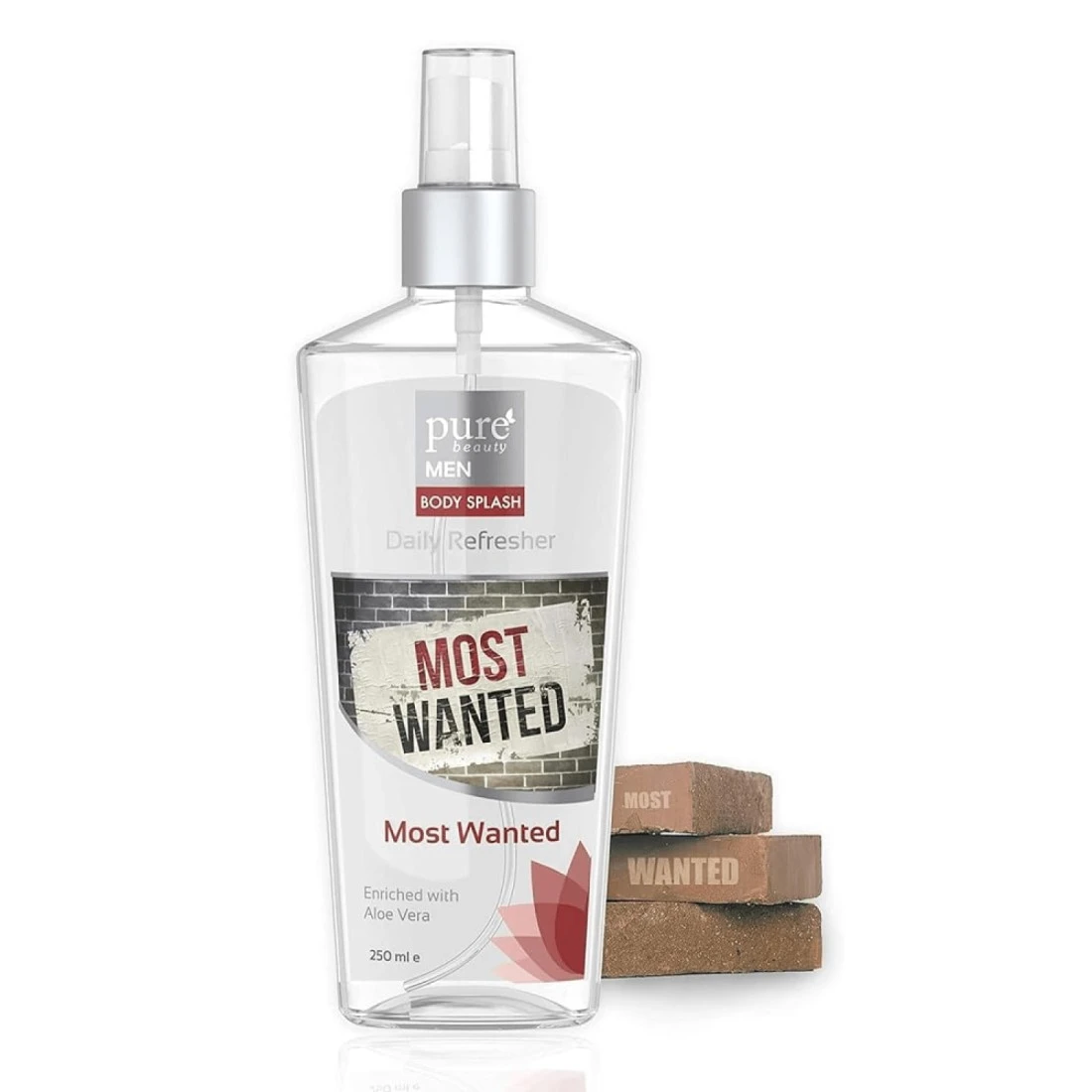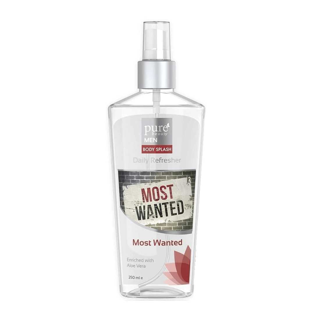 Pure Beauty Men Body Splash Most Wanted :Provides you with a lovely lasting delicate scent throughout the day.Infused with moisturising and calming aloe vera while giving your skin a refreshed feeling.Leaves you smelling unique and fresh.