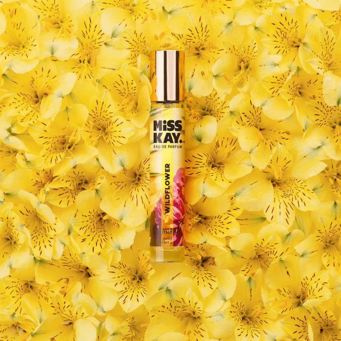 Miss Kay Wildflower For Women Fragrant citrus and Damask roseGo outside your reality towards a wonderful adventure created for you by the scent of this fragrance from Miss Kay.Rich in notes of wildflowers, yellow flowers, and a concentrated, fragrant citrus scent.A fragrance worth trying.A fragrant floral perfume for women.The fragrance starts with lemon, mandarin and fruits.The heart of the fragrance contains ylang ylang, Damascus rose, Bulgarian rose, and neroli.Surrounded by base notes of cedarwood, tonka bean, moss and wood.Information:vegan.Not tested on animals.
