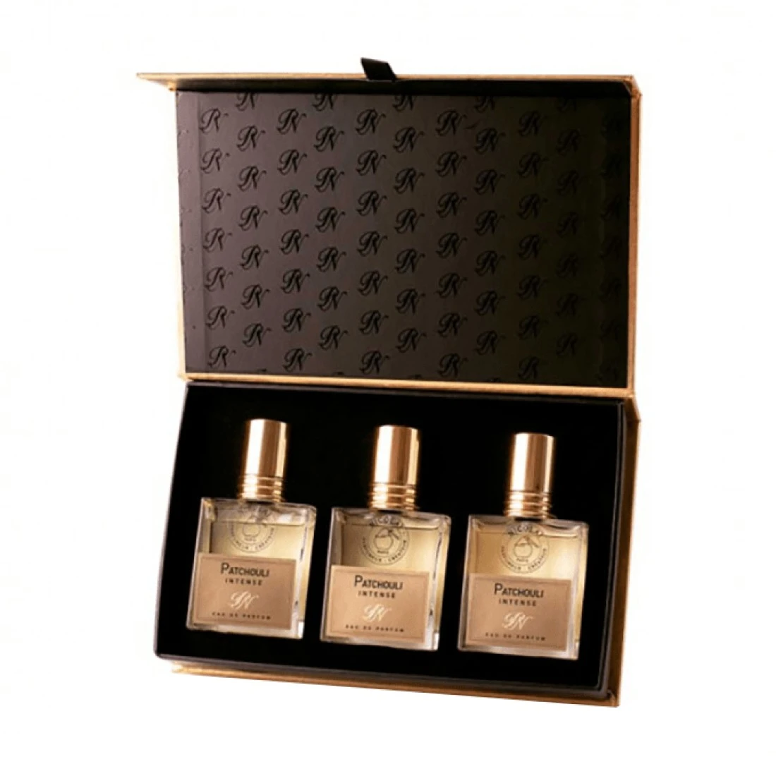Nicolai Parfumeur Createur Patchouli Intense Gift Set:A luxurious chypre perfume set for men and women with a very nice scent.The fragrance starts with Geranium, Lavender, and Orange.While the heart of the fragrance contains Patchouli, Ceylon Cinnamon, and Rose.Surrounded by the base of Sandalwood, Amber, and Vanilla.The set Includes:3× Nicolai Parfumeur Createur Patchouli Intense - Eau De Parfum - 30ml.The perfect set for a beautiful smell attracts everyone around you.