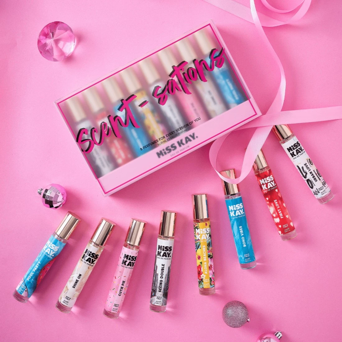 Get to know the world of Miss Kay with the Discovery Kit, a selection of 8 most-loved scents for different vibes and occasions.