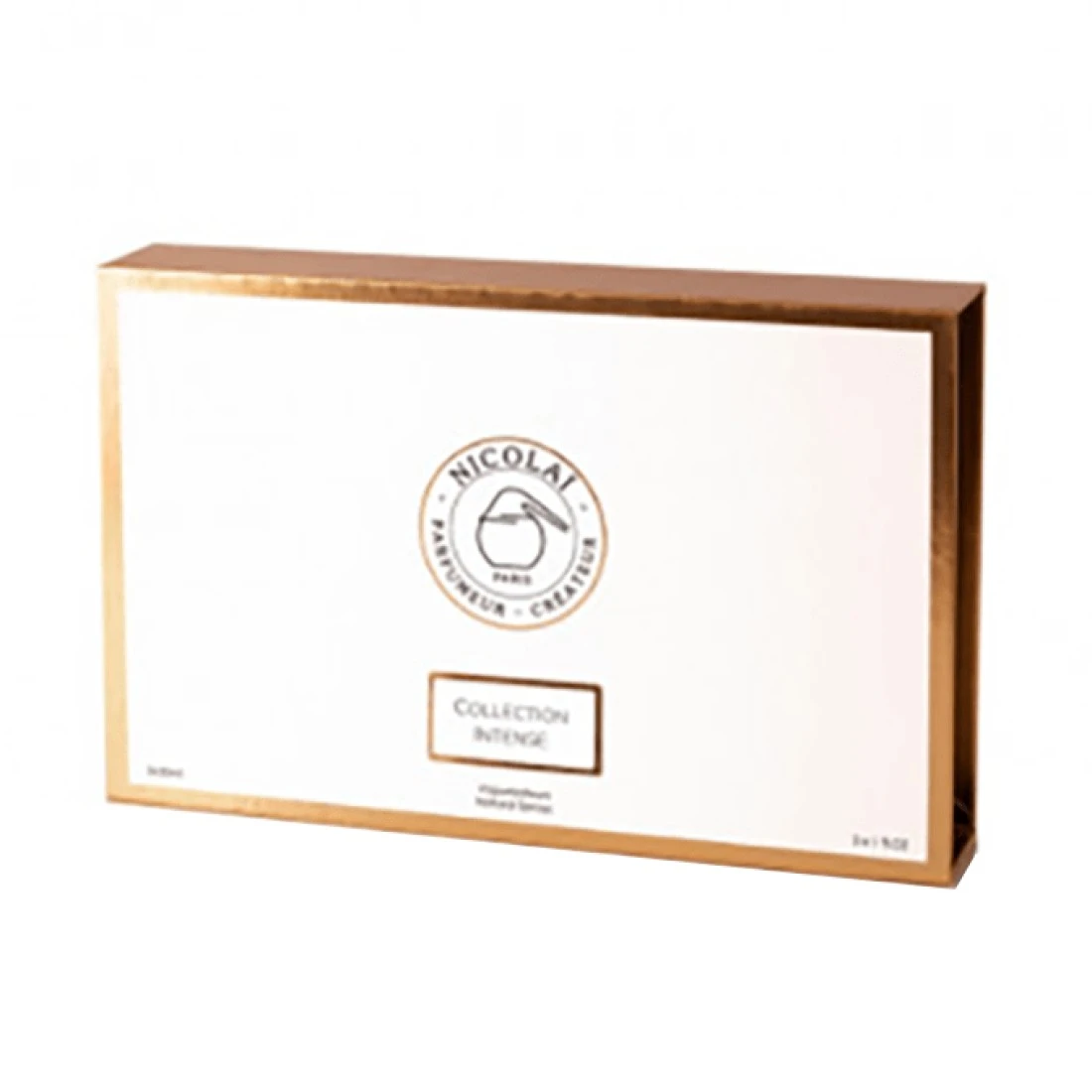 Nicolai Parfumeur Createur Travel Collection:Several fragrances set by Nicolai with a small size suitable for travel and mobility.Each bottle comes in a 30 ml size, making this set perfect for gifting or simply to have with you on the go. This luxurious collection is designed with several different scents that you can try out and enjoy.The set includes:1× Baikal Leather Intense - Eau De Parfum - 30ml: a woody fragrance containing Yuzu, Saffron, Leather, Iris blossom, Musk, and Tonka.1× Ambre Cashmere Intense - Eau De Parfum - 30ml: an oriental fragrance containing Orange, Black pepper, Violet, Amber, and Vanilla.1× Patchouli Intense - Eau De Parfum - 30ml: a chypre fragrance containing geranium, lavender, orange, patchouli, cinnamon, Ceylon, rose, sandalwood, amber and vanilla.The perfect set for a smell that attracts everyone around you.