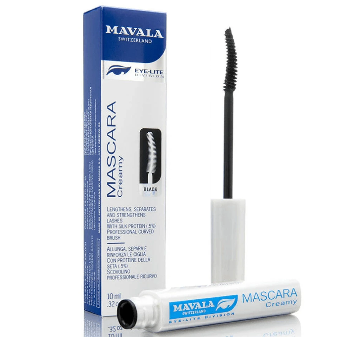 Paraben free. Mavala Creamy Mascara:The smooth and nourishing formulation gives color, protects, and helps extend the life of lashes thanks to hydro-regulating silk proteins.A new generation polymer ensures a perfect hold all day long, with no smudging and no flaking.The specially curved professional brush combined with a fine, conditioning formulation, coats even the smallest lash, from root to tip, giving an intense color, whilst perfectly separating them.