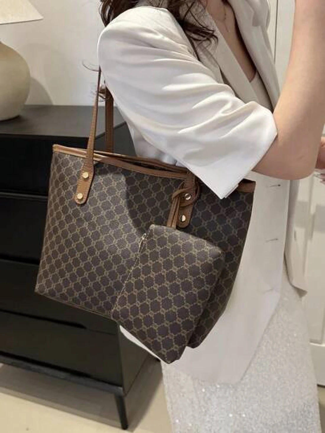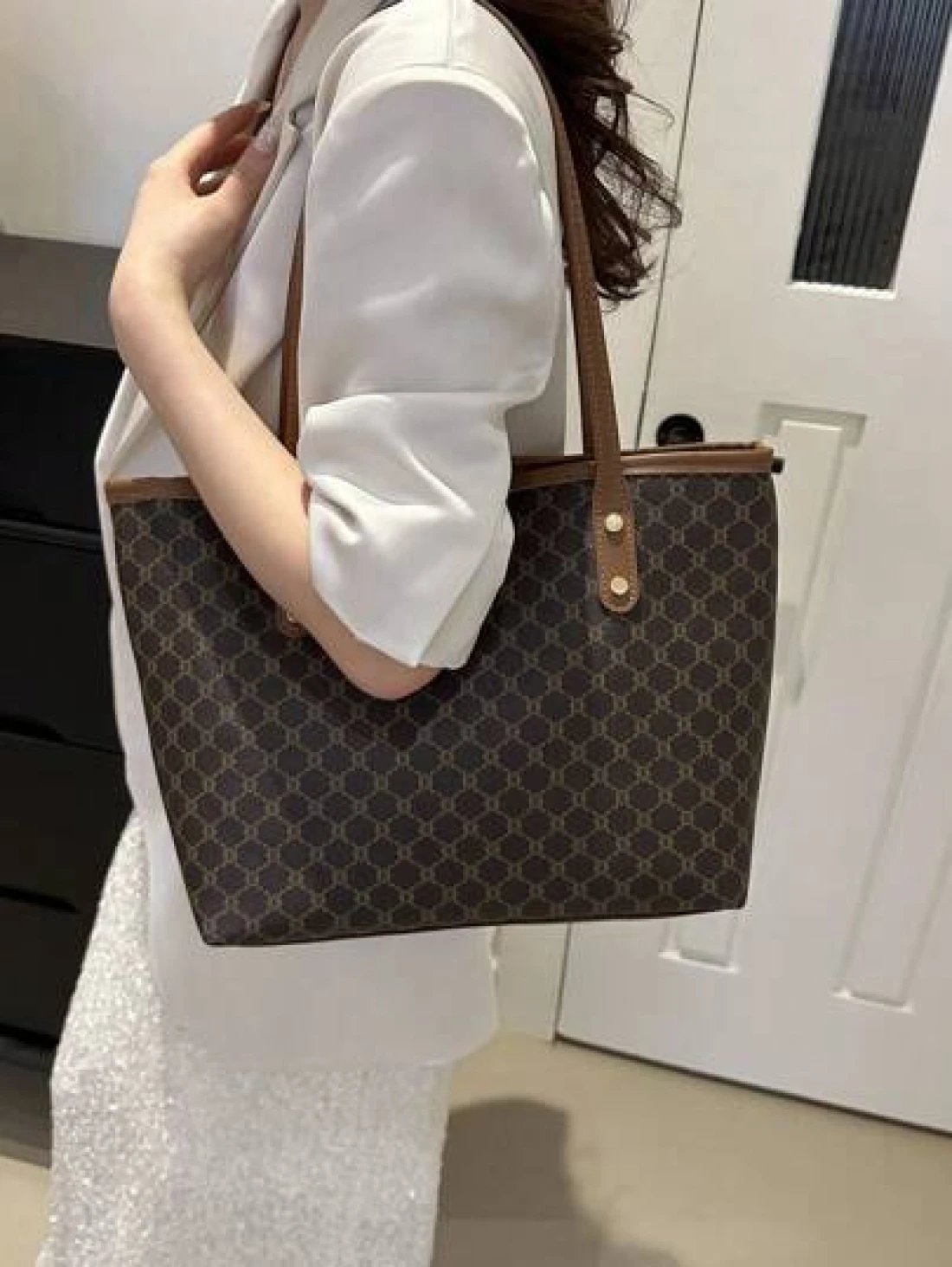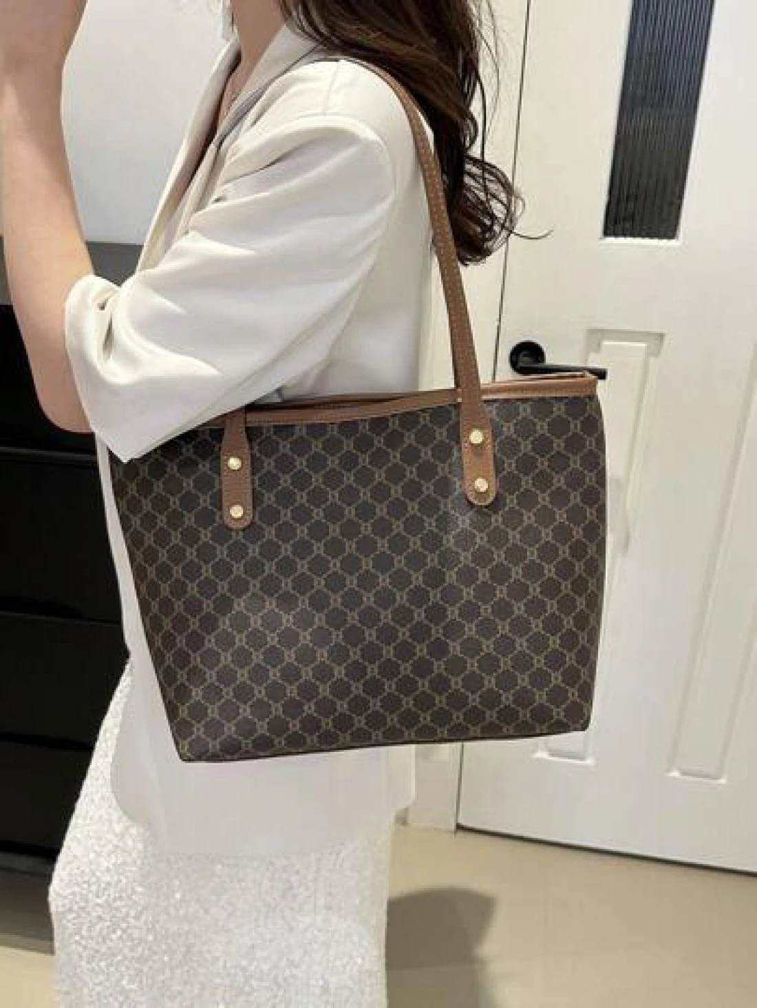 Fashionable Geometric Pattern Foldable Tote Bag With Large Capacity Mini Wallet Included Suitable For Girls And Women For Shopping Commuting And Holiday Travel Old Money Style Women BagSchool Bag