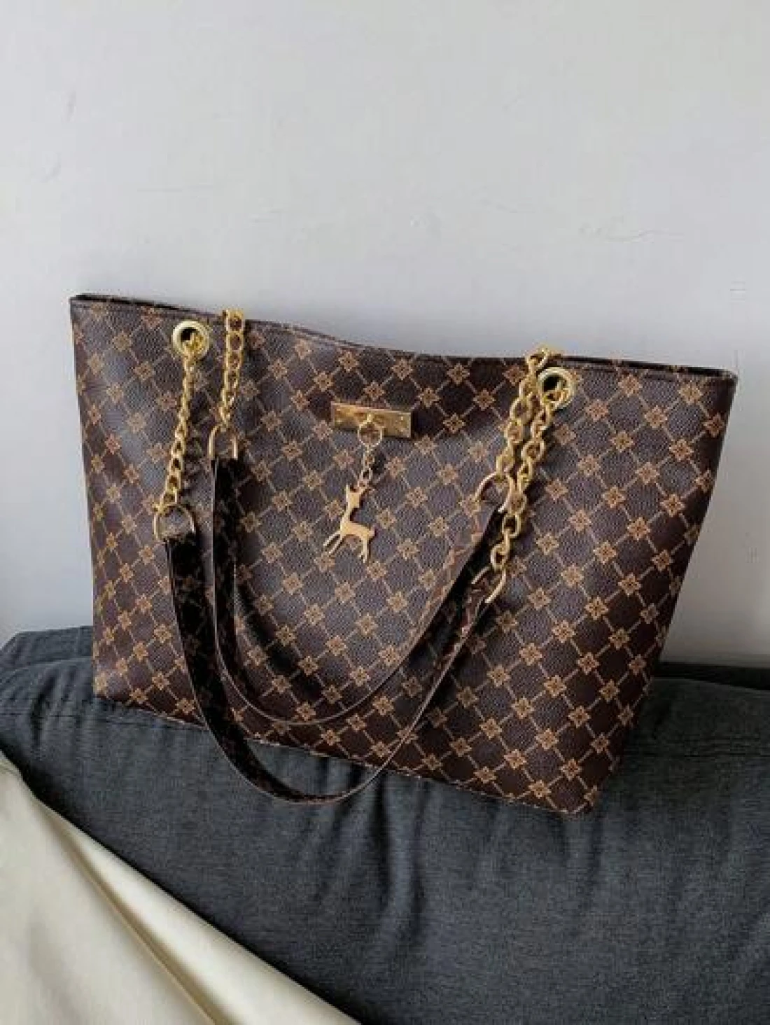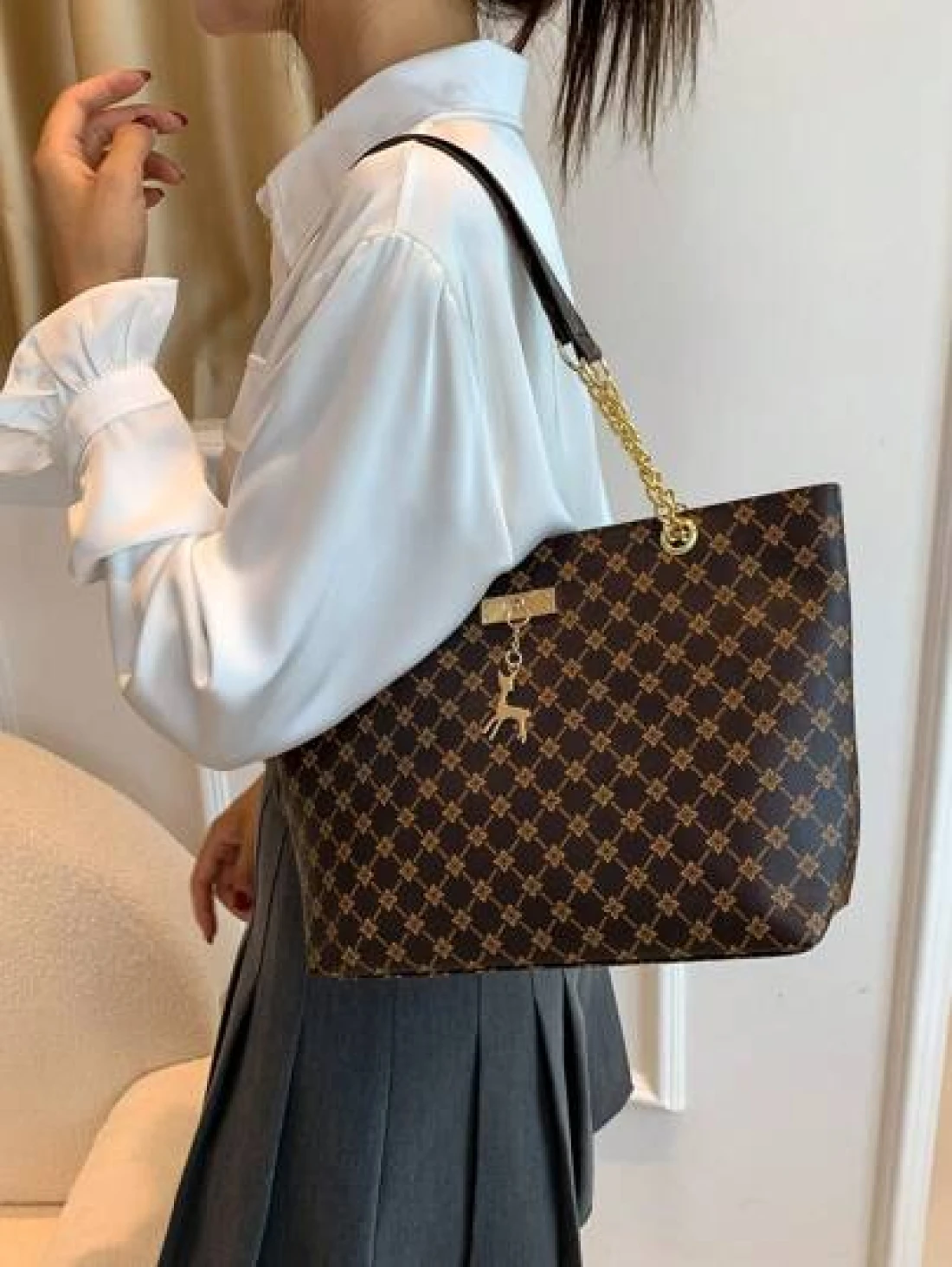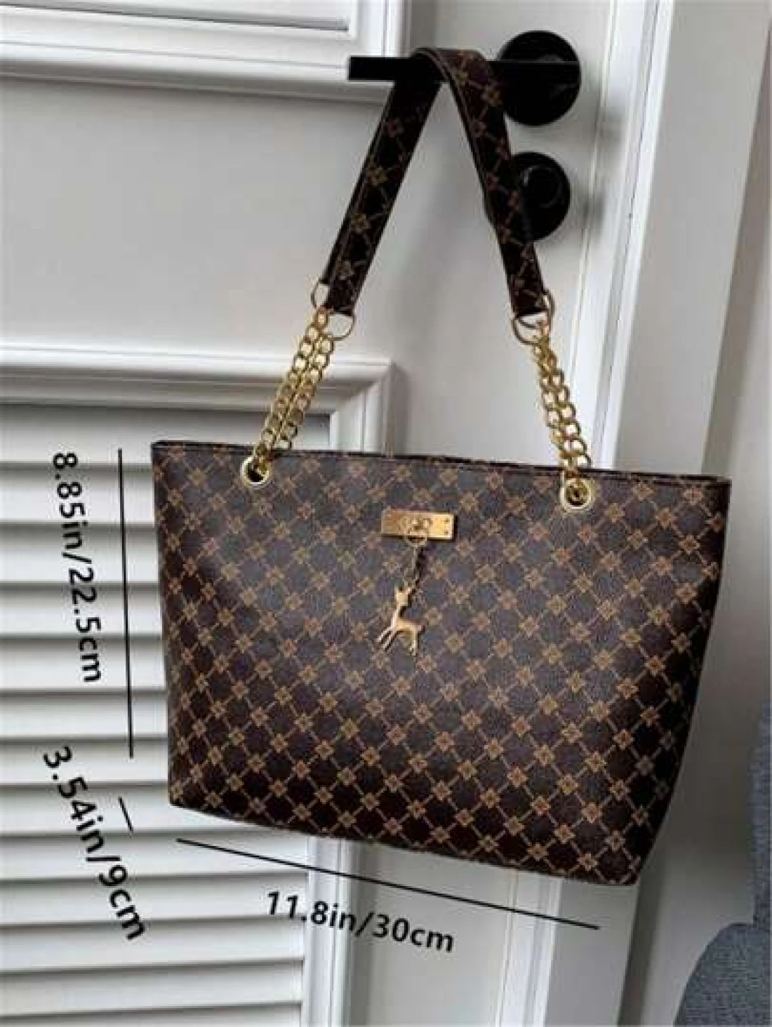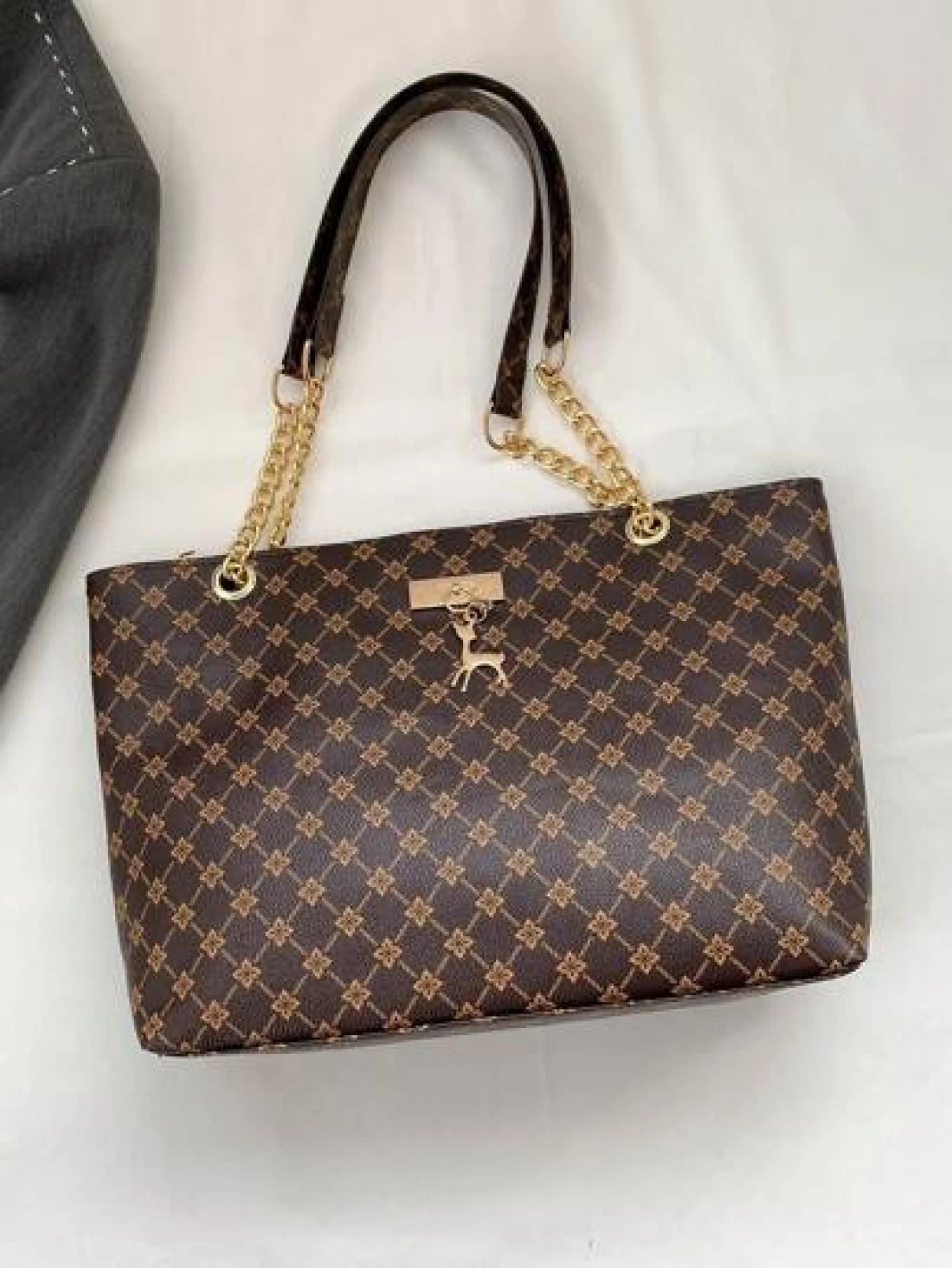Fashion Metallic Deer Hanging Ornament High Capacity Chain Shoulder Bag Crossbody Bag Handheld Bag Featuring Rhinestone Flower Vintage Floral Pattern Casual Tote Suitable For Office Commuting Outdoors