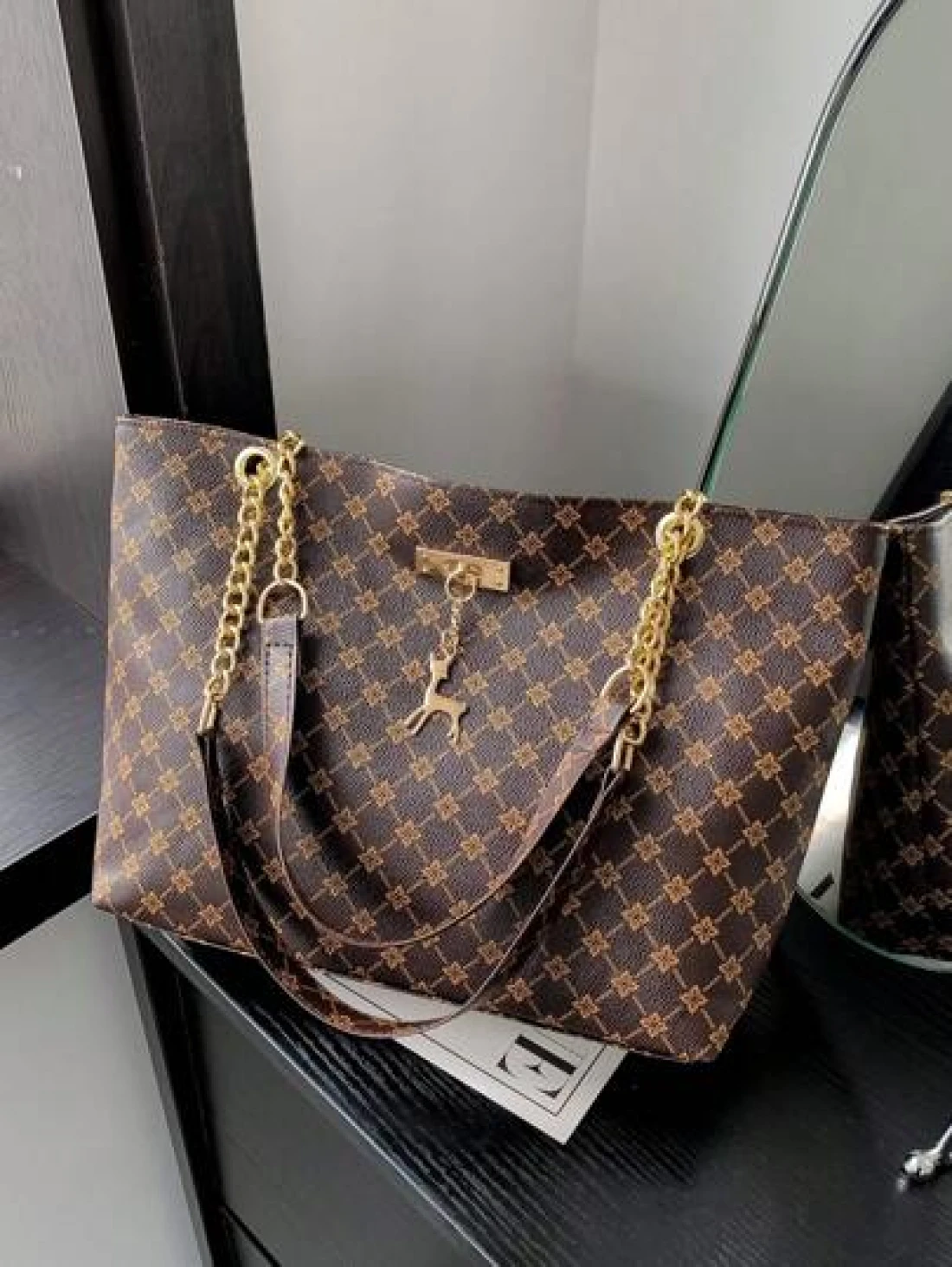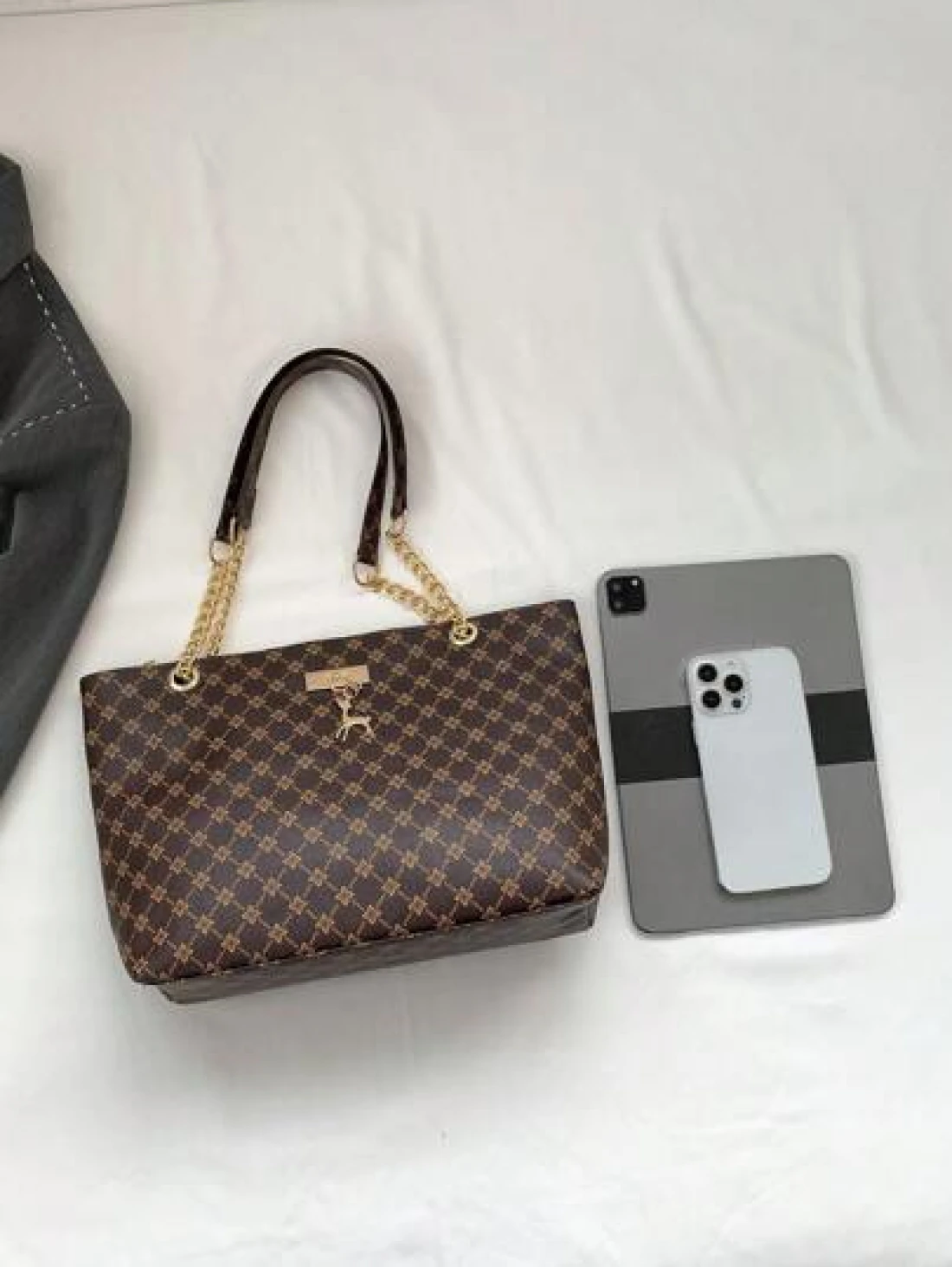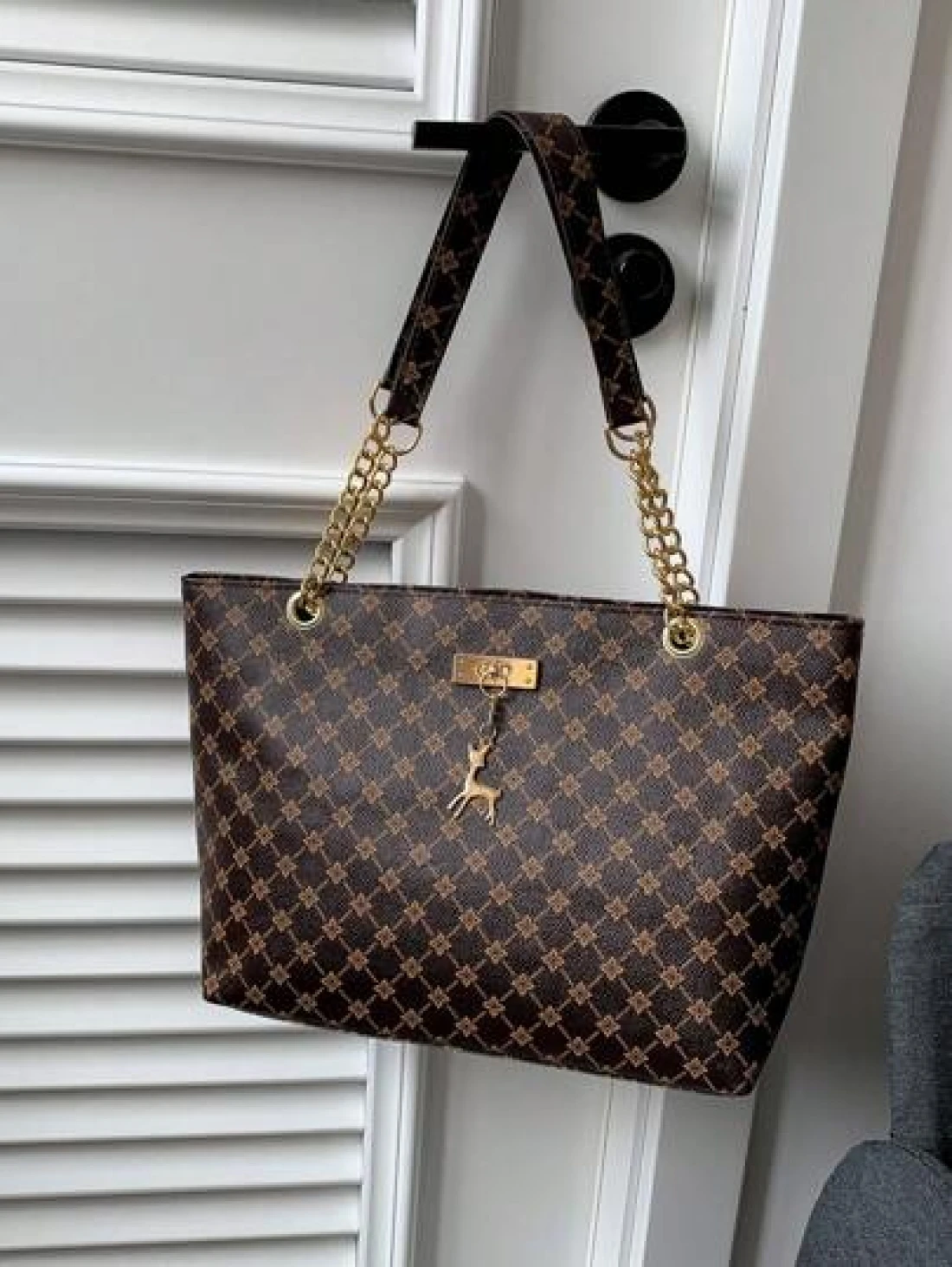 Fashion Metallic Deer Hanging Ornament High Capacity Chain Shoulder Bag Crossbody Bag Handheld Bag Featuring Rhinestone Flower Vintage Floral Pattern Casual Tote Suitable For Office Commuting Outdoors Women s Handbags
