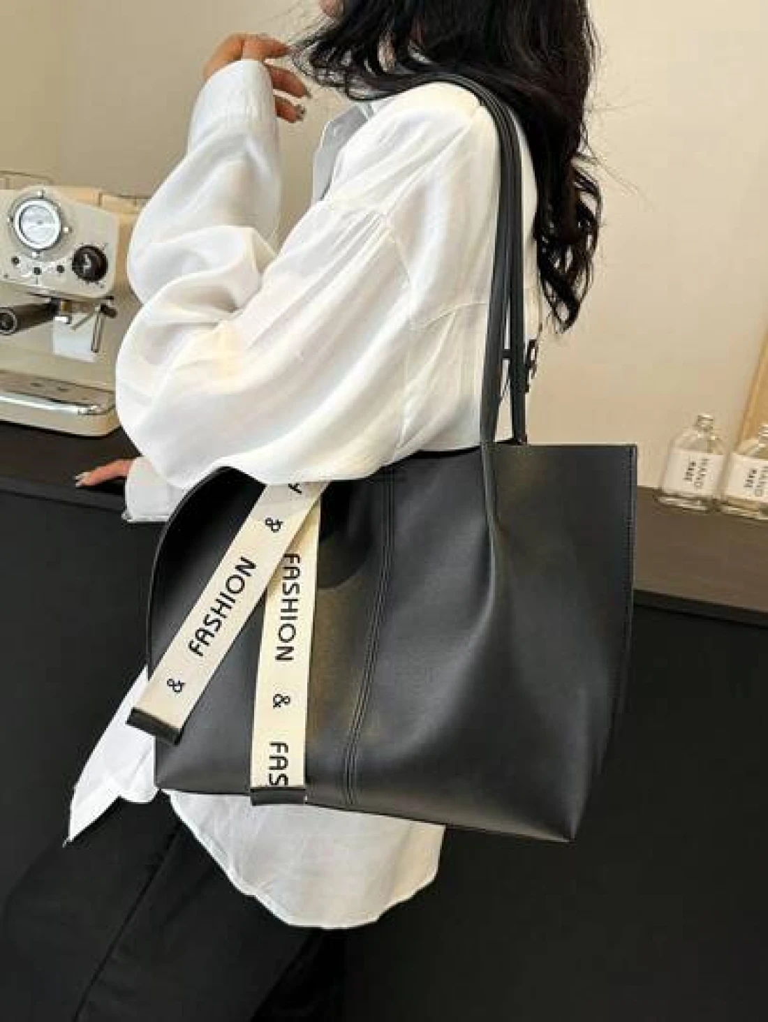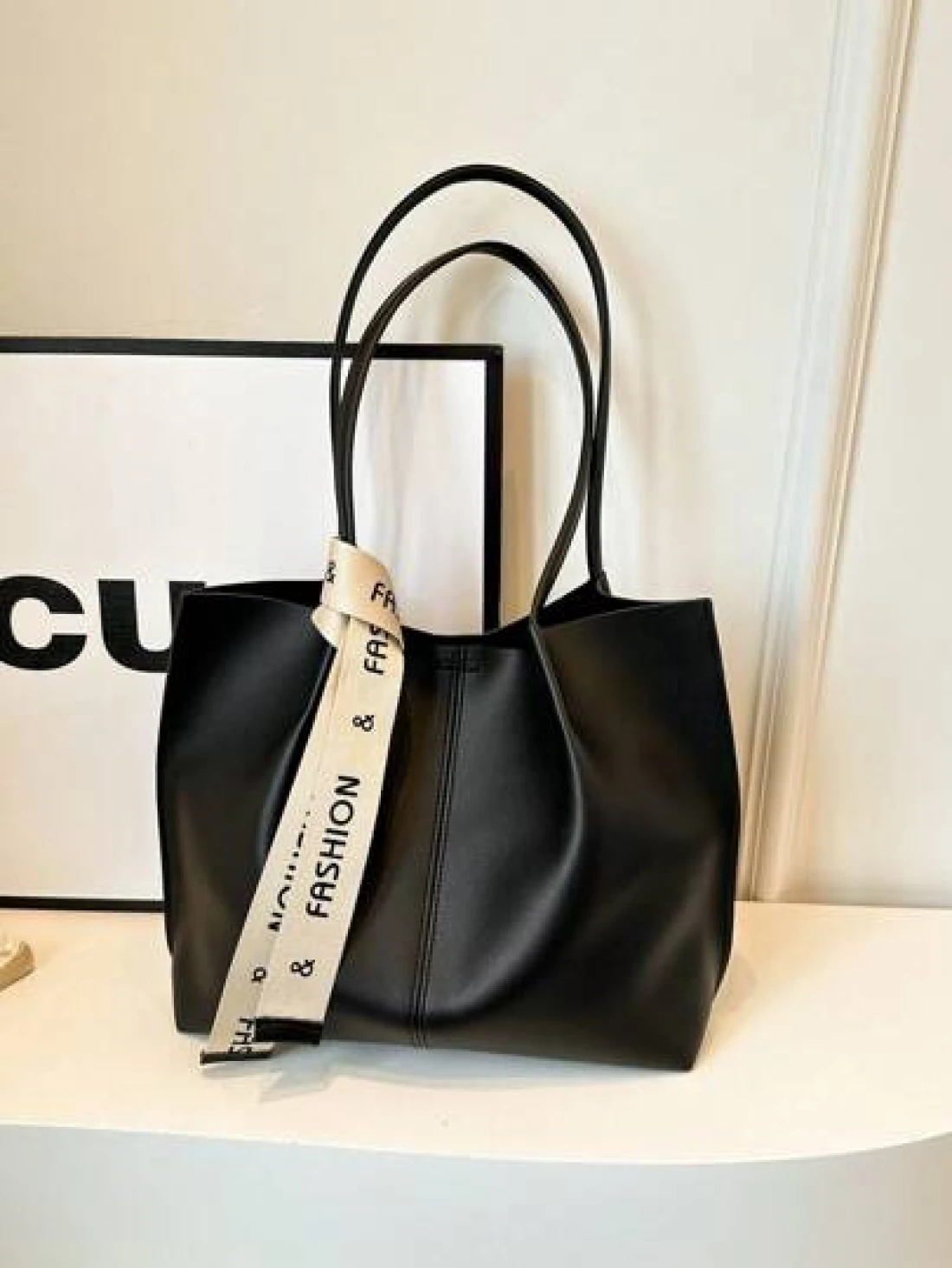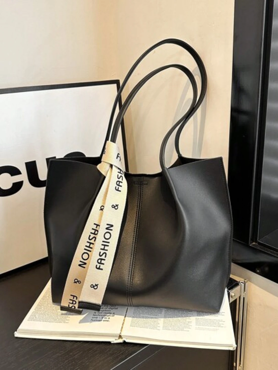 Women s Versatile Solid Color Handbag Malist PU Leather Large Capacity Shoulder Bag With Silk Scarf Decor Lightweight Large Capacity Shopping Bags For Daily Office Work Fashion Waterproof Square Tote Bag Mom s Holiday Gifts New In Fall Winter Larrge Capacity Shoulder Tote Bag