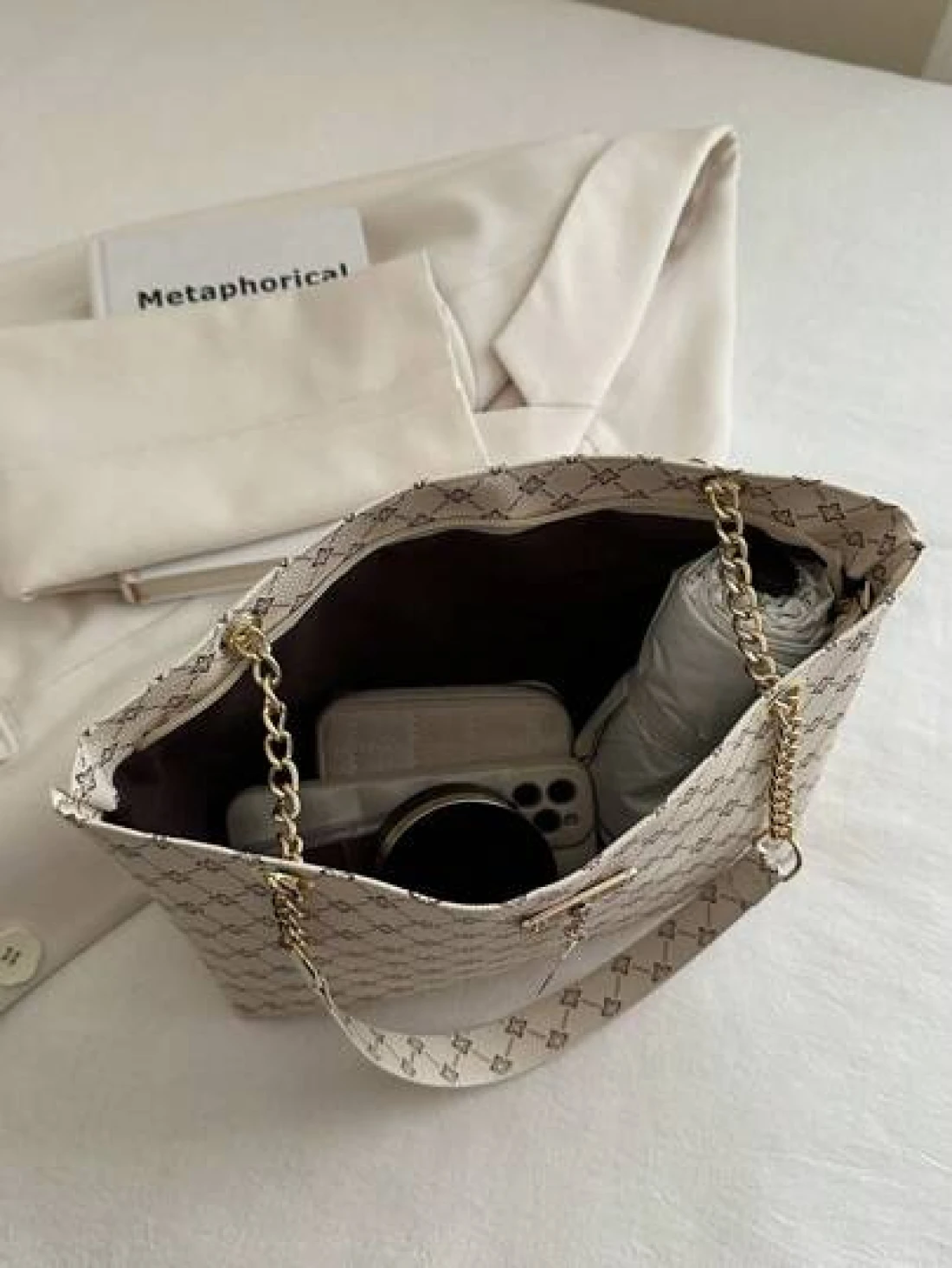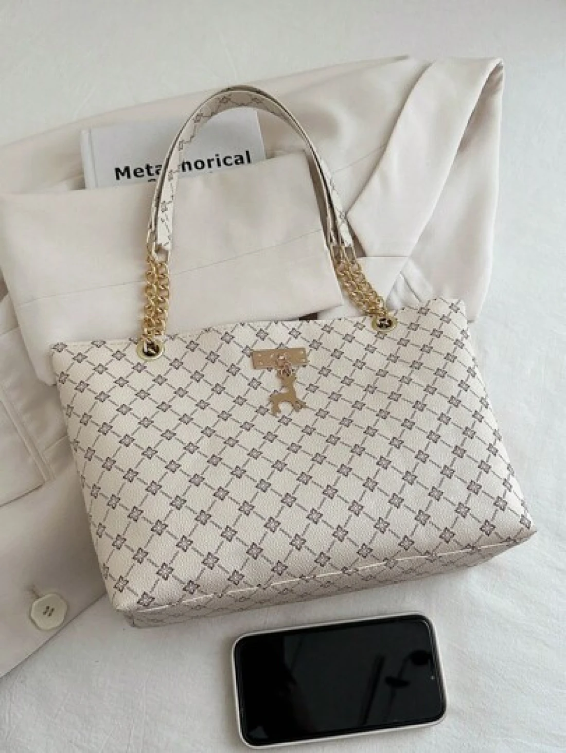 Fashion Contrasting Geometric Pattern Chain Shoulder Bag Suitable For Shopping Wallets Shopping Young Women College Students Newcomers White Collar Workers They Are Very Suitable For Offices Universities Work Business Commuting Outdoor Travel And Outings