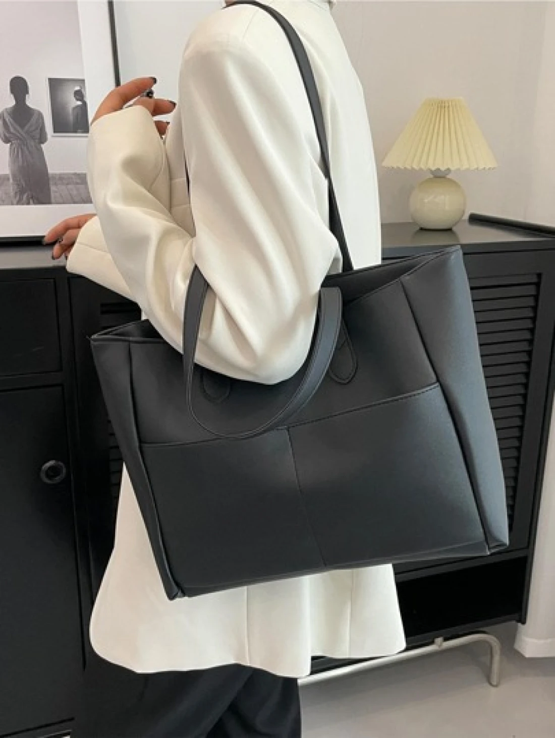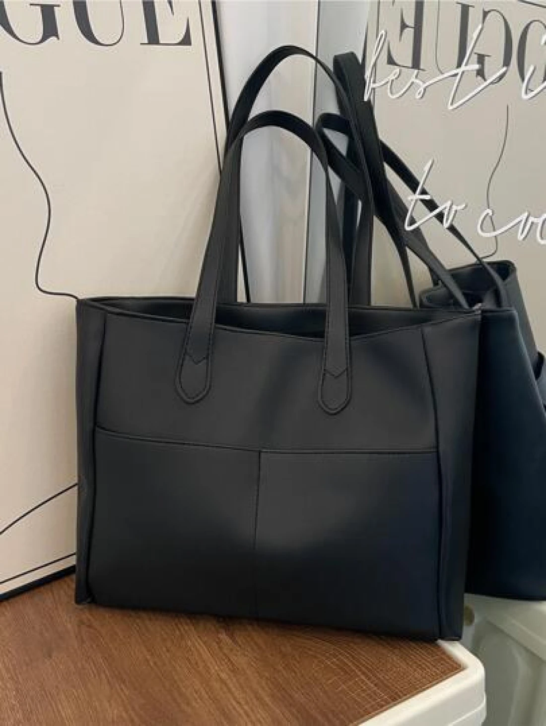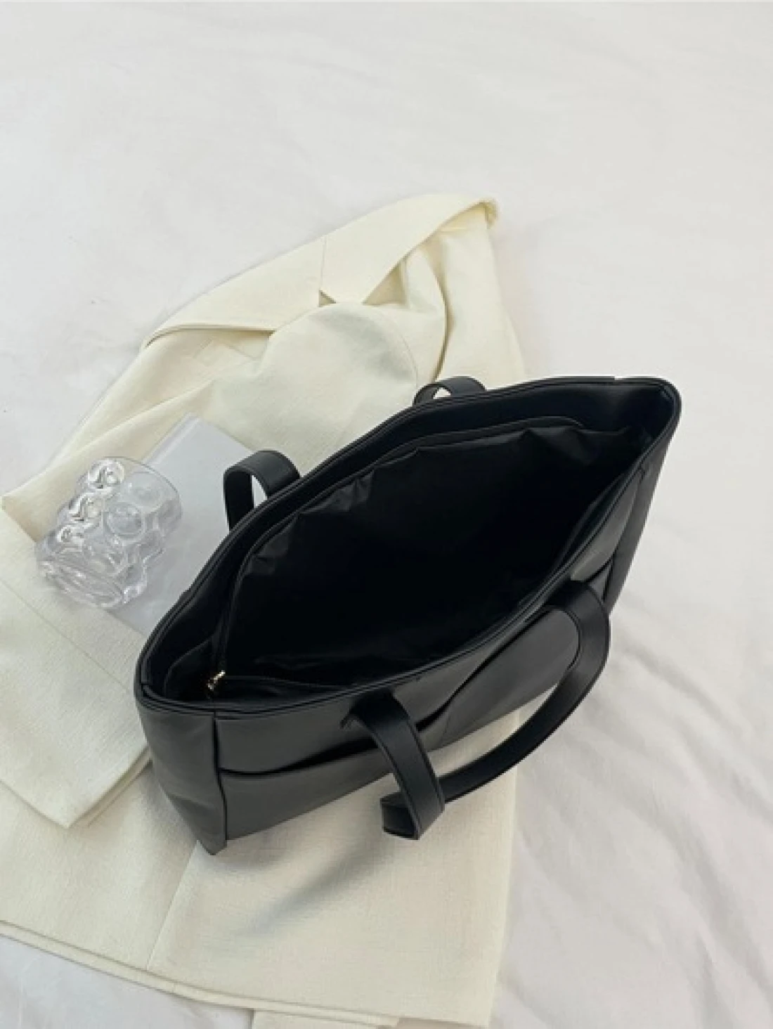 Minimalist Black Double Handle Square Bag