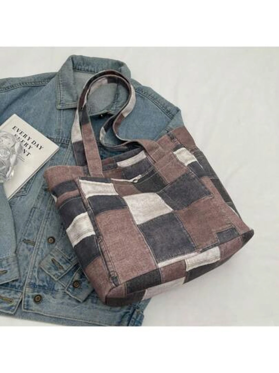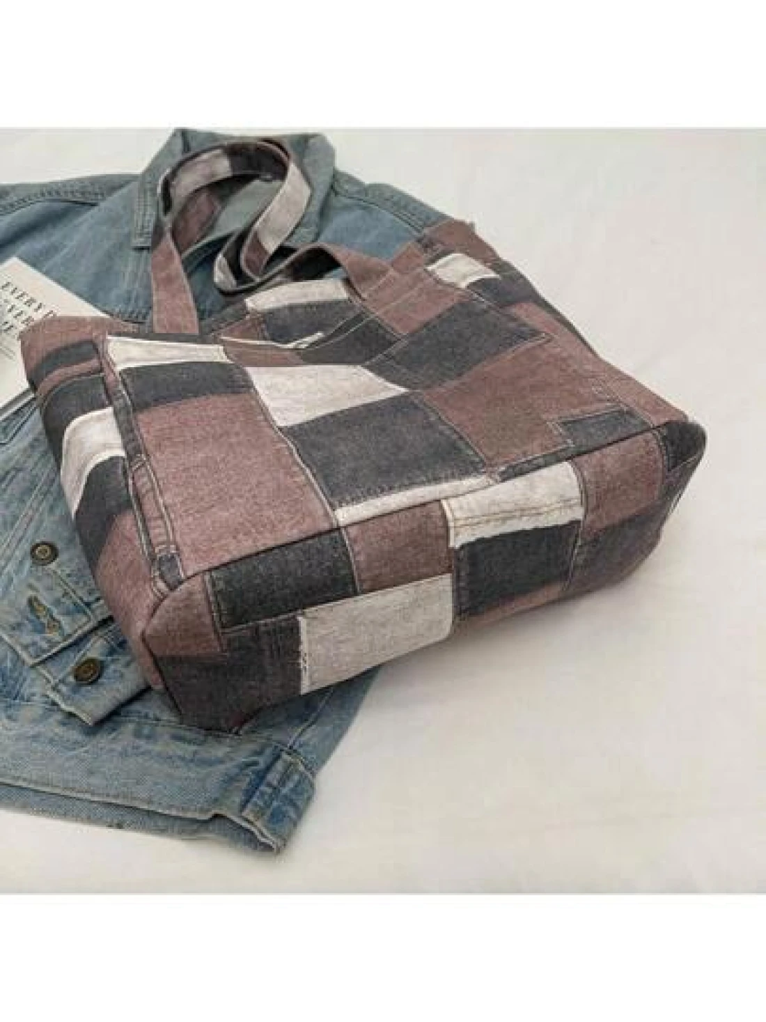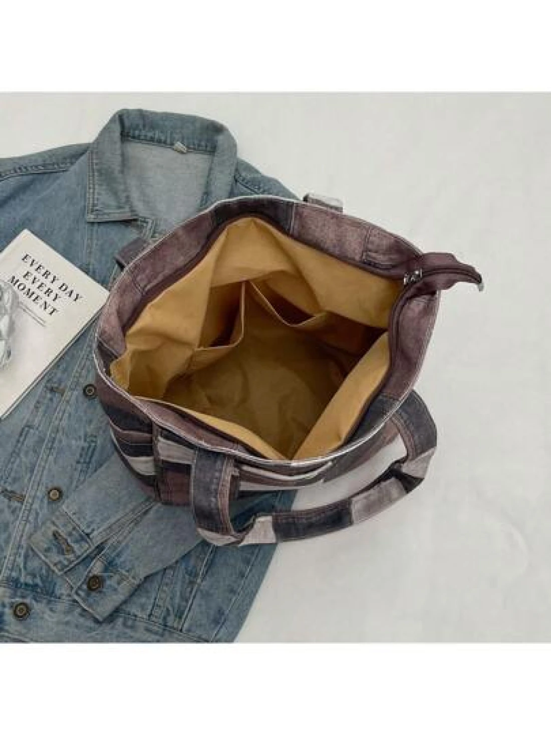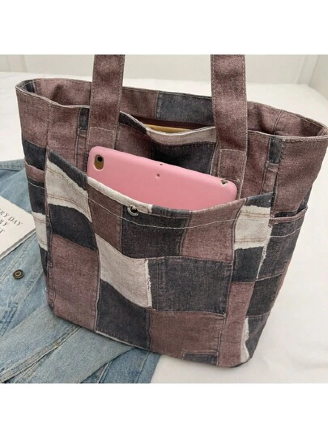 Canvas Denim Printed Tote Bag Multi Pockets Shoulder Handbag Fashion Denim Backpack For Women