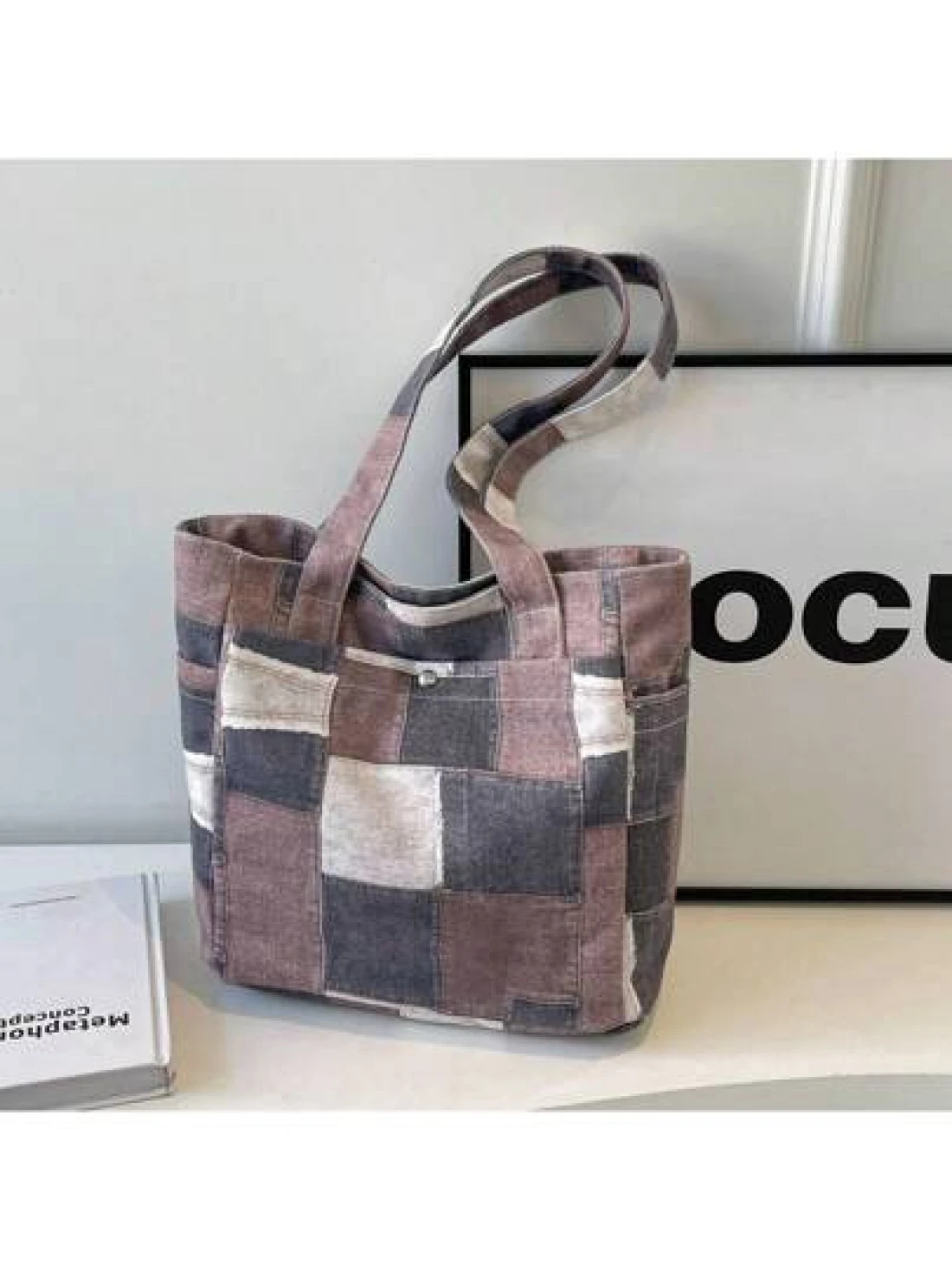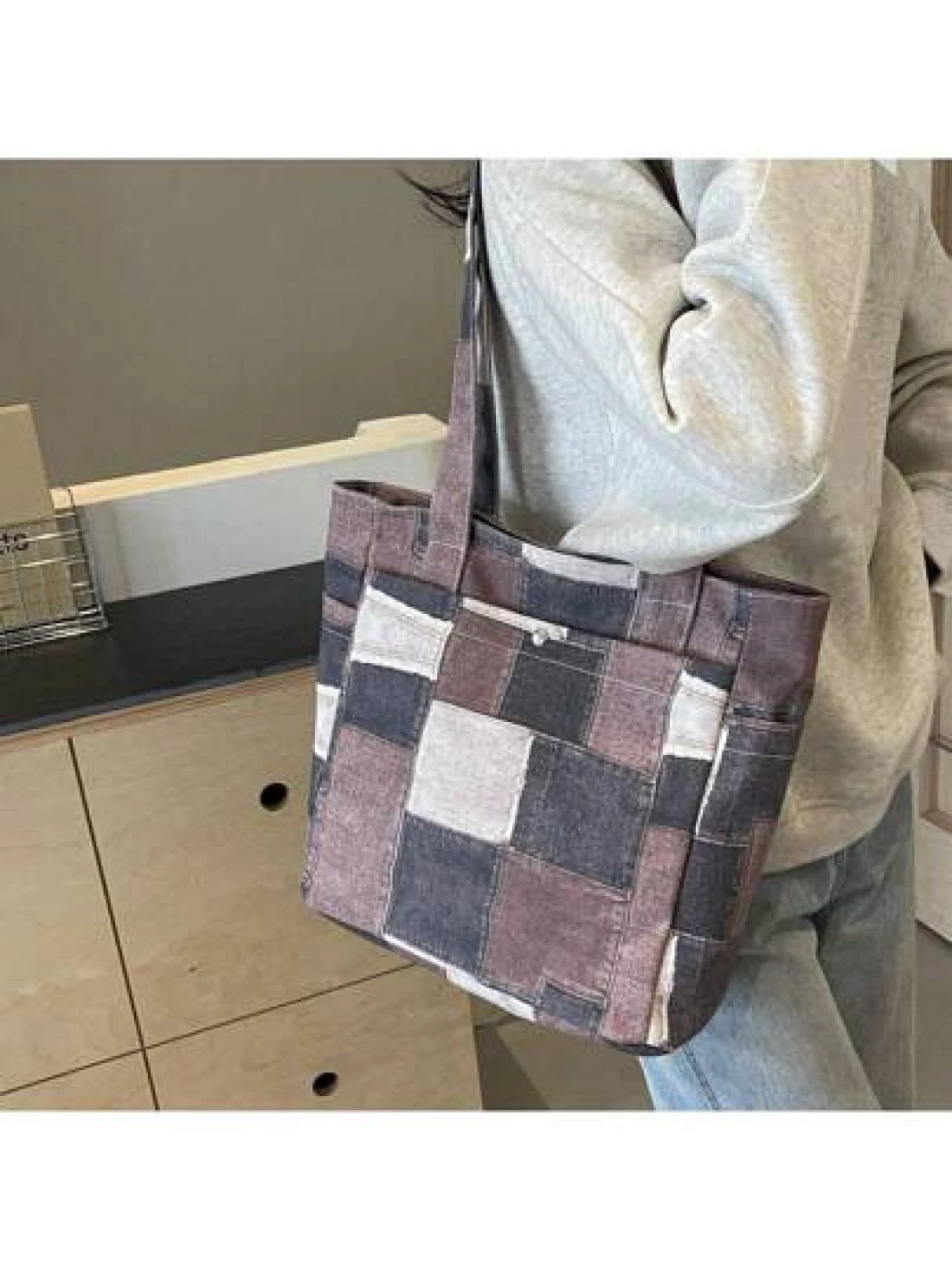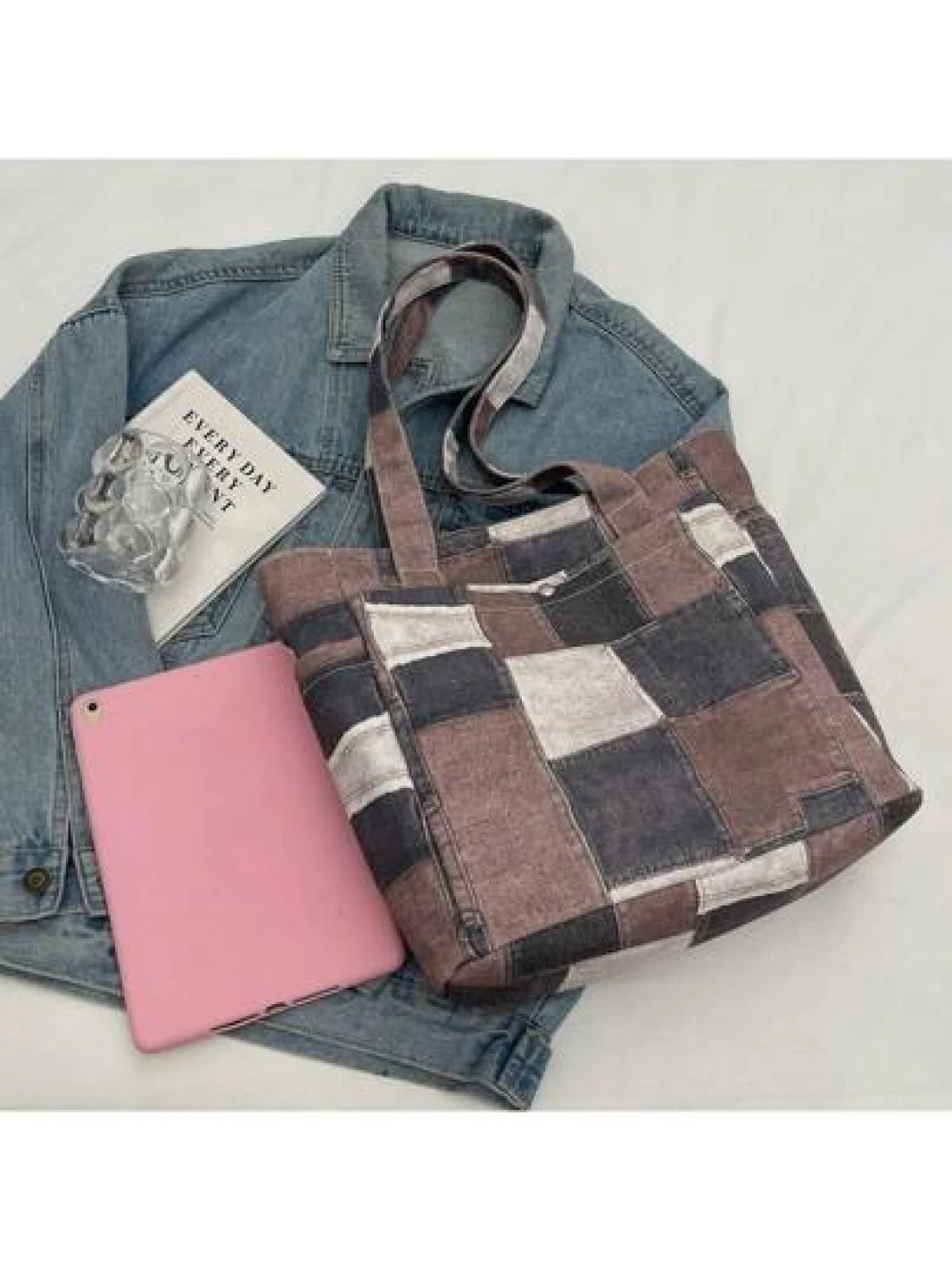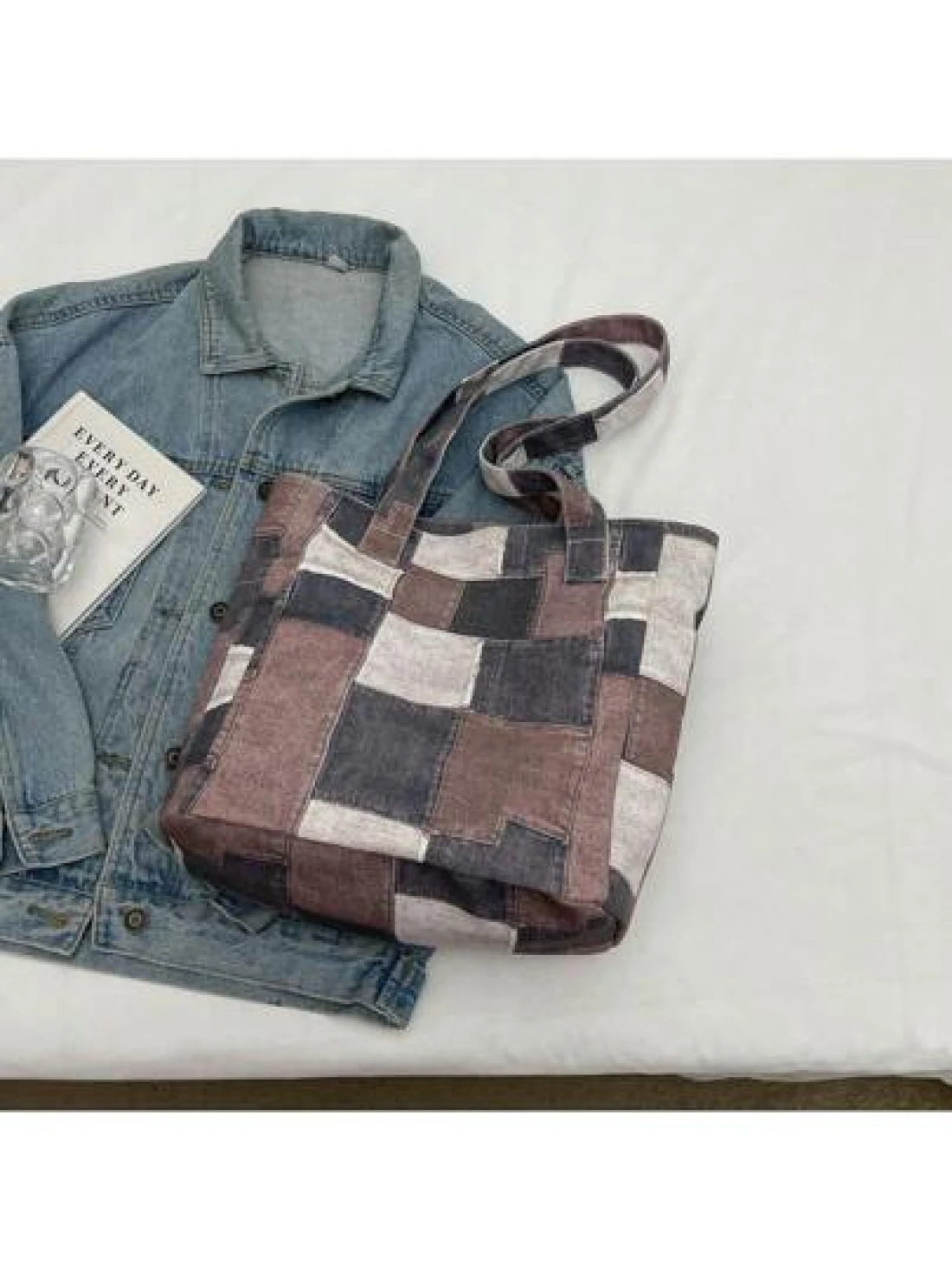 Canvas Denim Printed Tote Bag Multi Pockets Shoulder Handbag Fashion Denim Backpack For Women