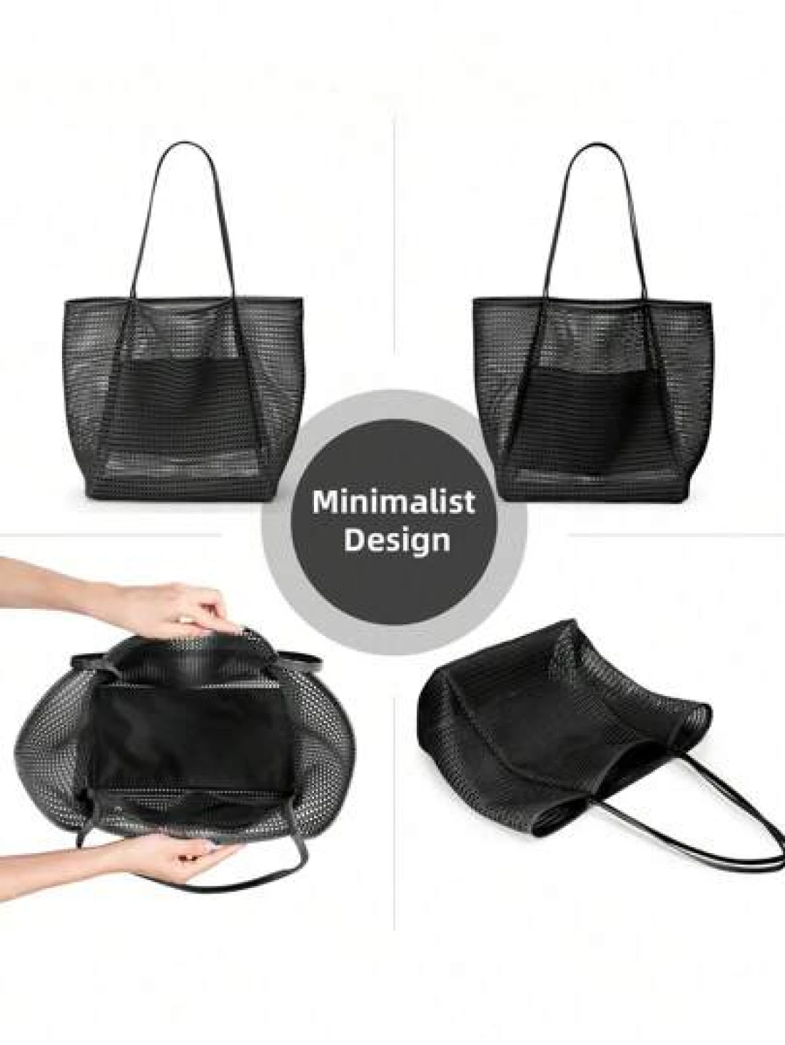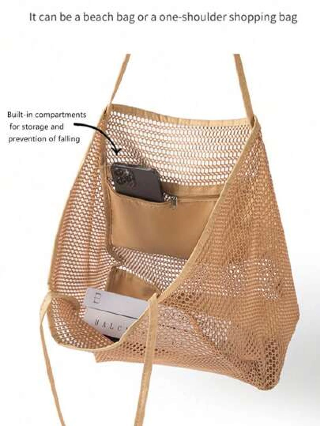 1pc Beach Mesh Tote Bag Casual Tote Bag Women Foldable Shoulder Handbag For Beach Picnic Vacation Large Capacity Waterproof Beach Bag Lightweight Foldable Beach Bag Portable Travel Bag Travel Essentials Multifunctional Shoulder Shopping Bag Handheld Beach Mesh Hollow Out Bag Hollow Bag Bath Swimming Large Capacity Storage Bags Multifunctional Travel Toiletry Bag Bathroom Bag Shoulder Handbag For Travel