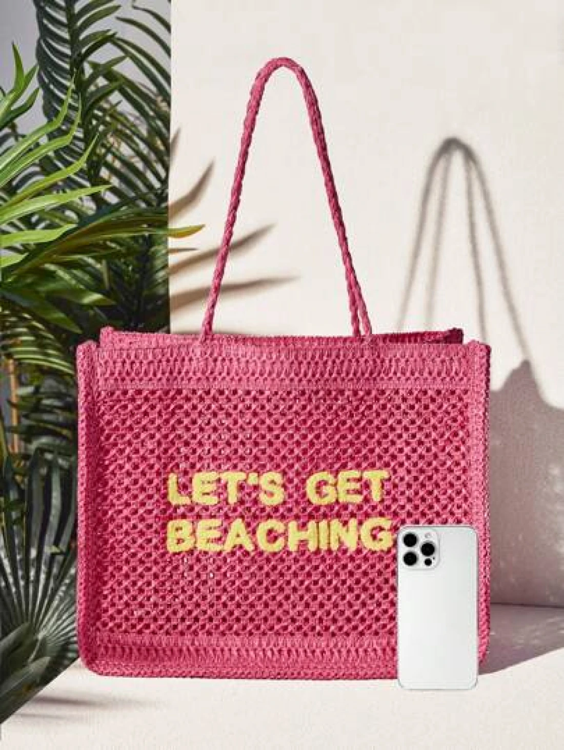 SHEIN VCAY Vacation Casual Letter Embroidery Hollow Out Tote Bag