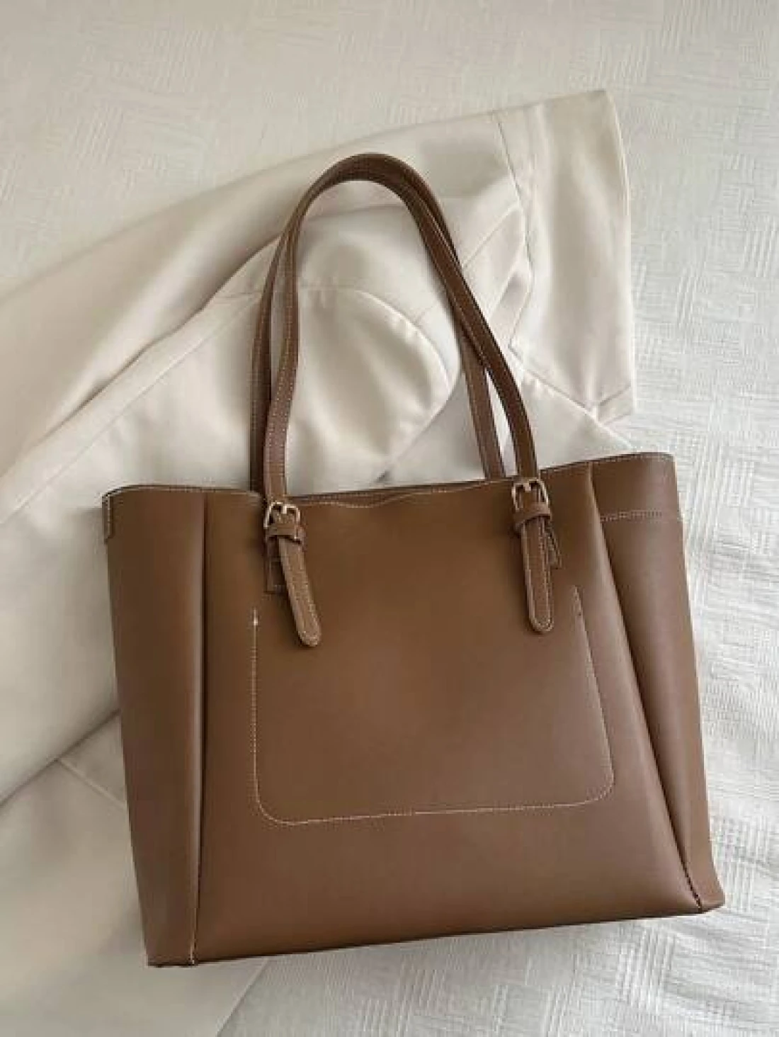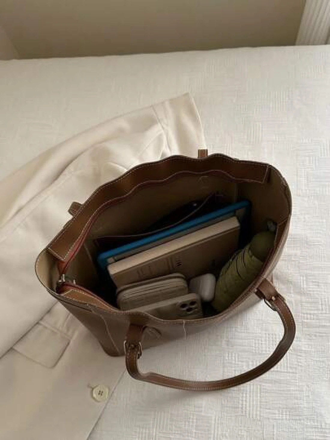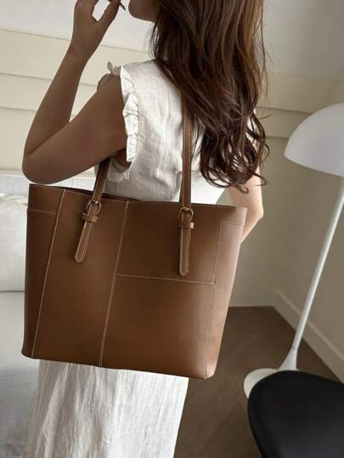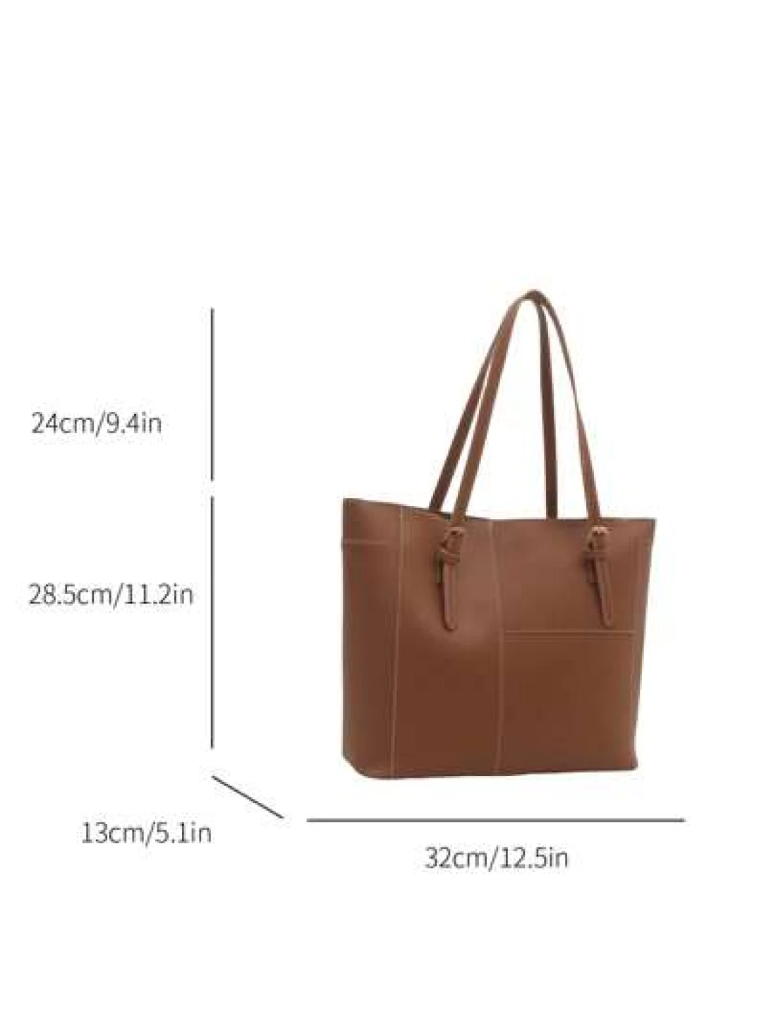 A Retro Fashion Large Capacity Tote Bag Zip Opening Stitching Solid Colour Soft Surface Lightweight Shoulder Bag Suitable For Ladies Daily Life Leisure Commuting Holiday Work Use Retro Inspired Bag Fo