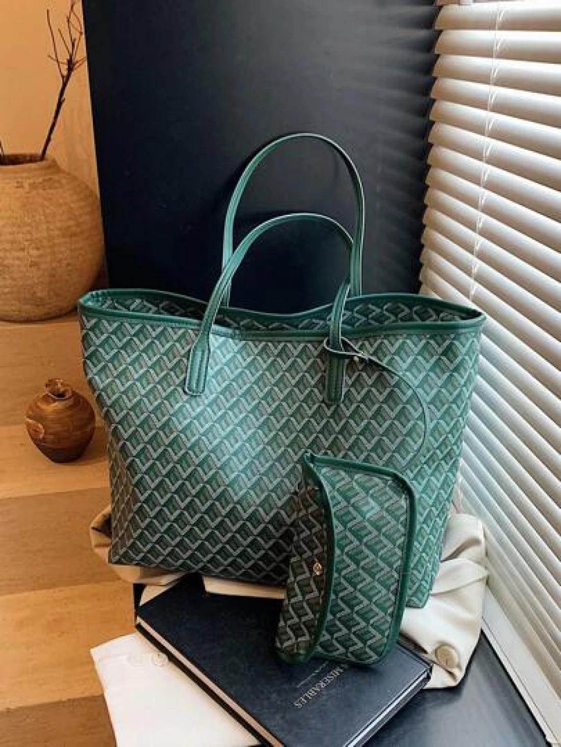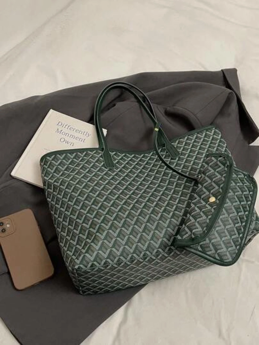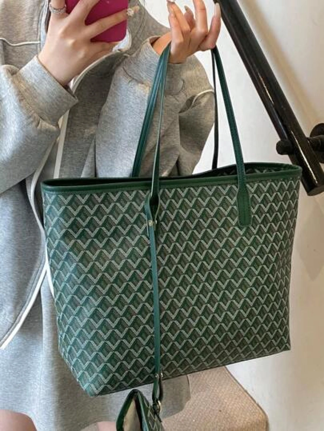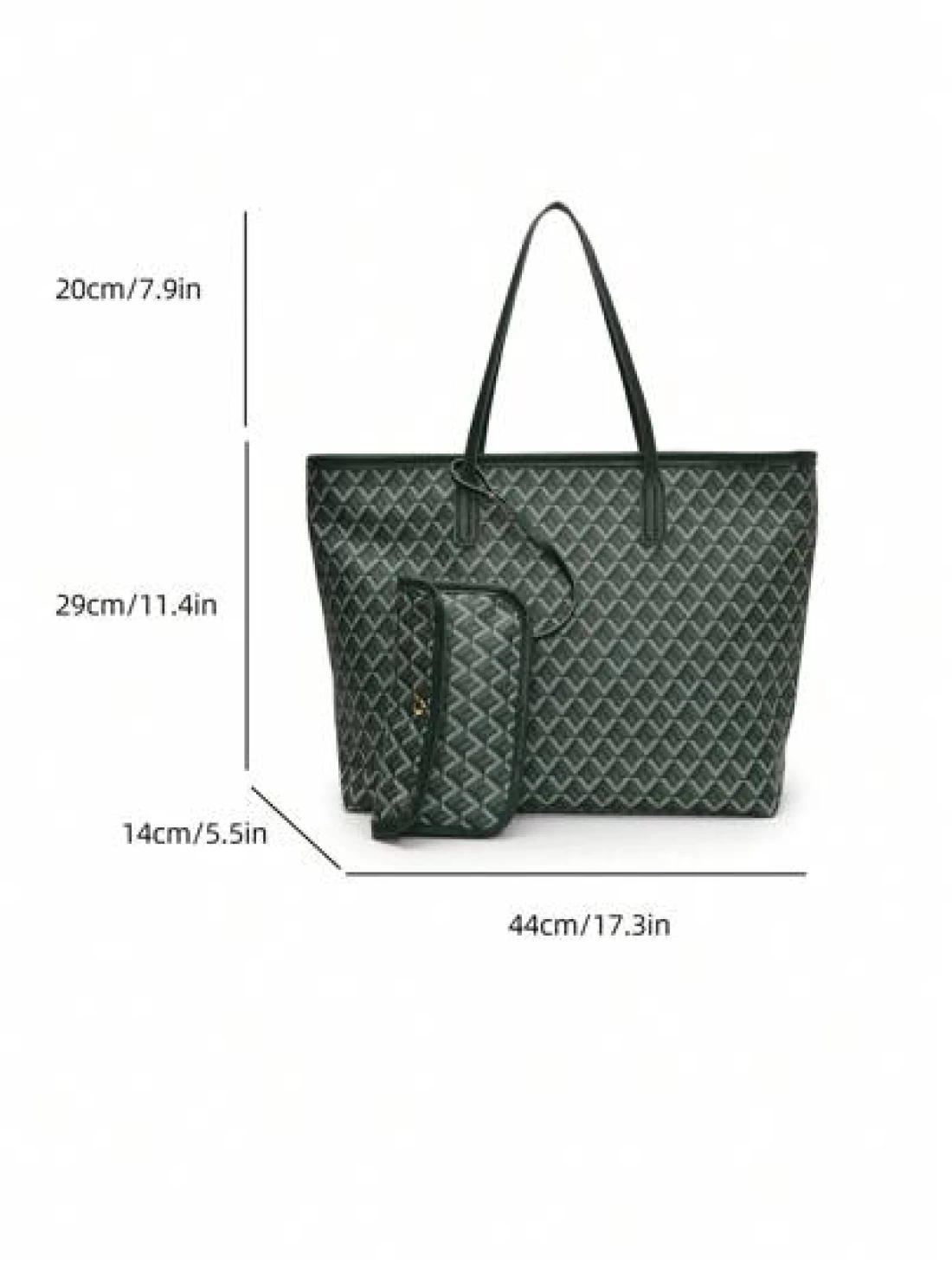 2pcs Set 2025 New Fashion Patchwork Tote Bag Large Capacity Travel Bag Shopping Bag Suitable For Women Daily Use Back To School Students Vacation Holiday Date Gift