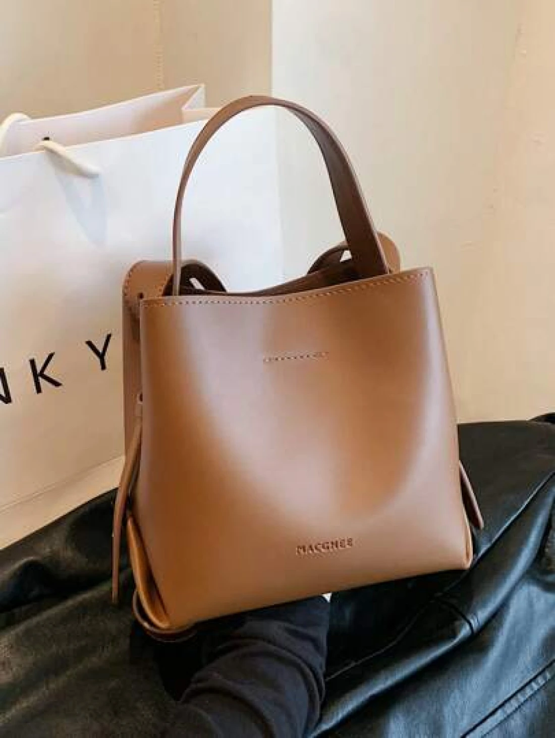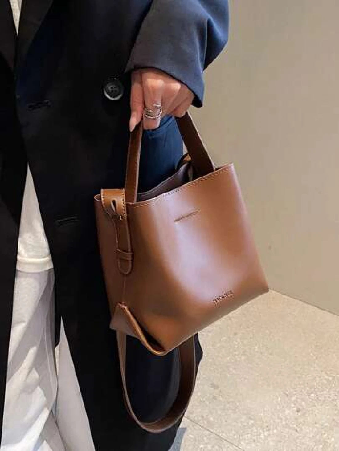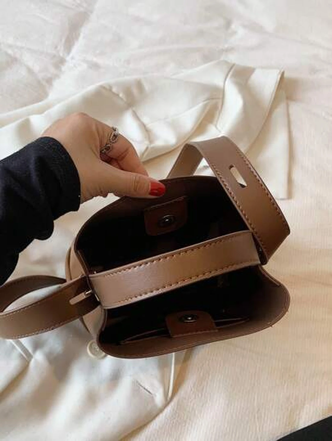 Fashion Women s Brown Handbag Simple Minimalist PU Leather Retro Mini Bucket Bag Versatile Shoulder Crossbody Bag Suitable For Shopping And Daily Use