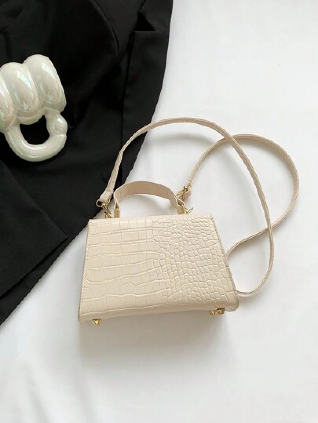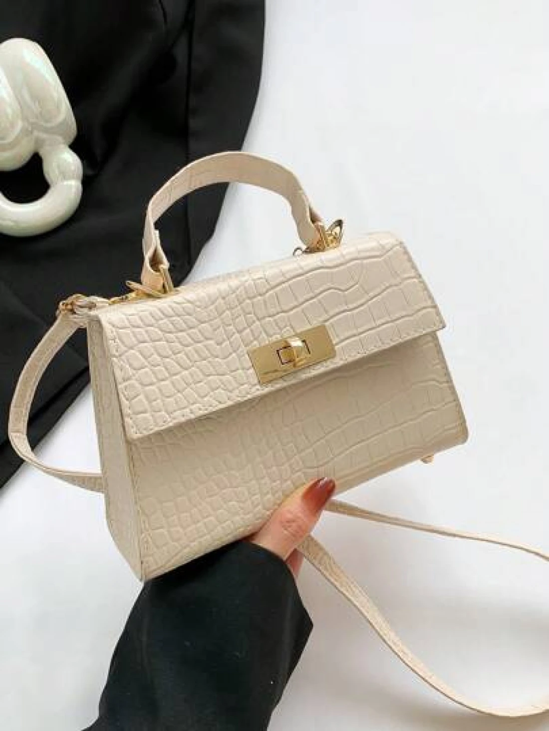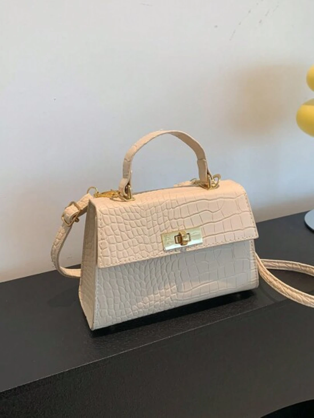 Fashionable Mini Metallic Alligator Pattern Crossbody Handbag With Flip Lock Twist Closure