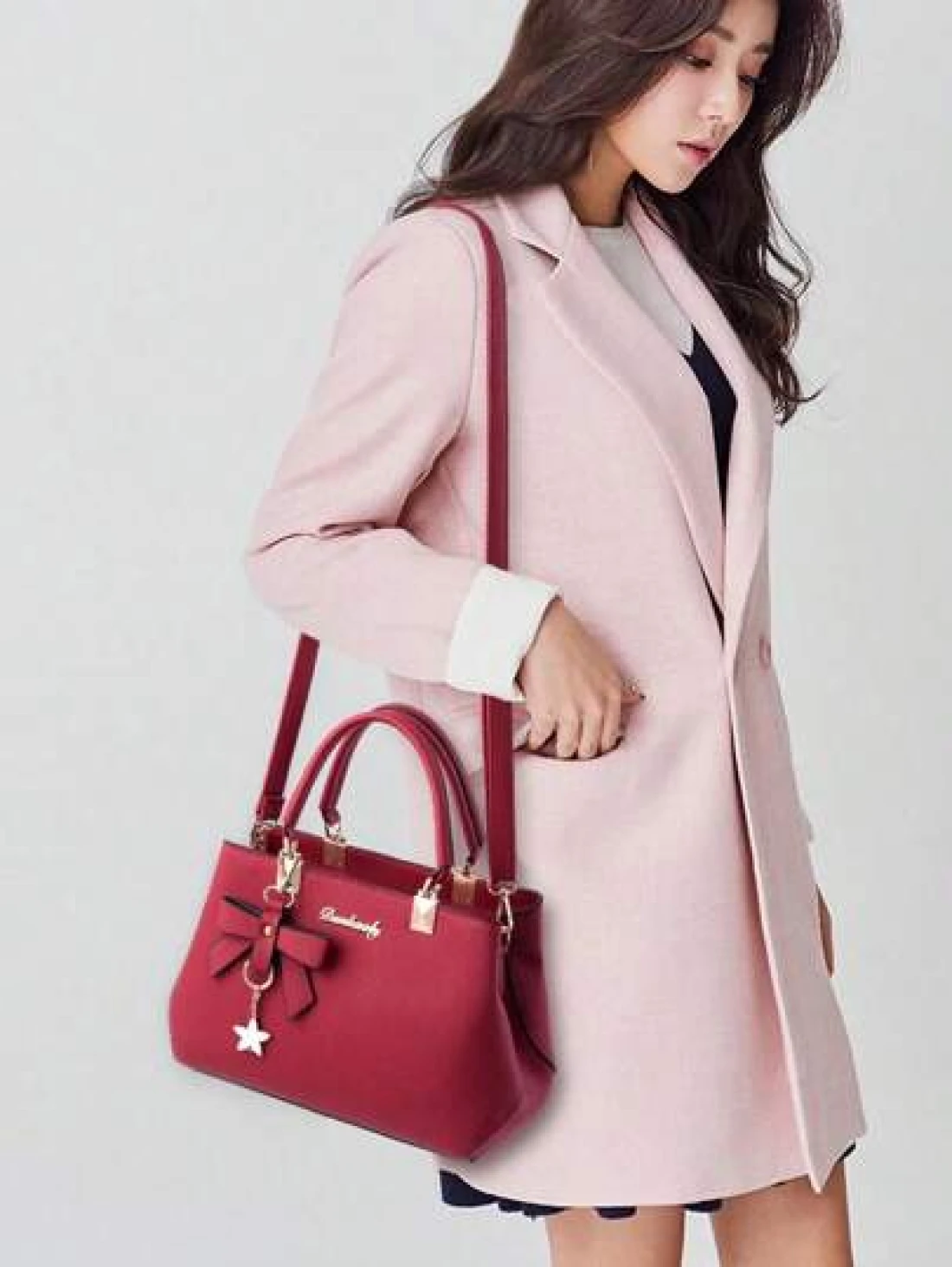 1pc Women s Burgundy Ancora Bordeaux Ruby Maroon Crimson Cherry Black Blue Grey Solid Color Handbag With Pu Material And Bow Star Pendant Suitable For Daily Leisure Shopping Travel Business Commuting School Bag Set Portable Classic Casual Business Casual Suitable For Teen Girls Female College Students White Collar Workers University Suitable For Office Elementary School Gift For Mother Or Elders Best Mothers Day Gifts Women