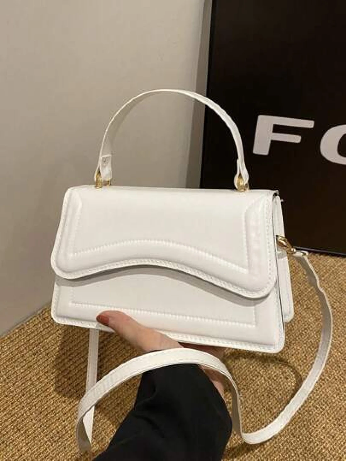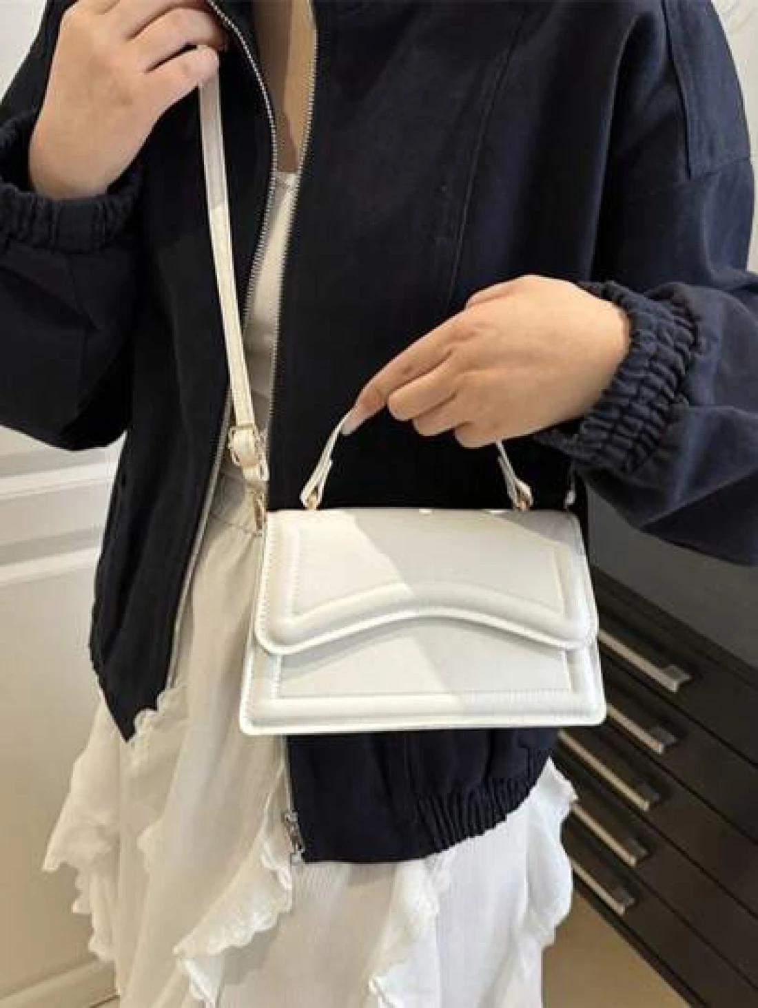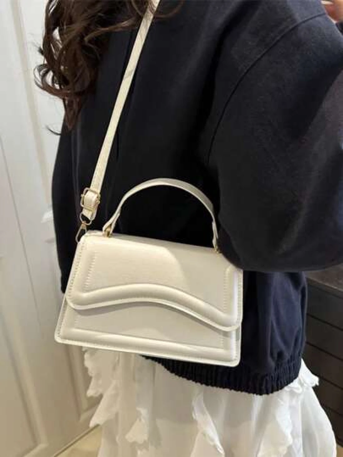 New White Solid Color PU Leather Small Square Handbag Simple Stylish Casual Shoulder Bag With Detachable Adjustable Strap For Women