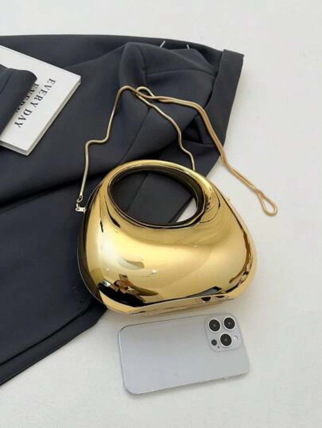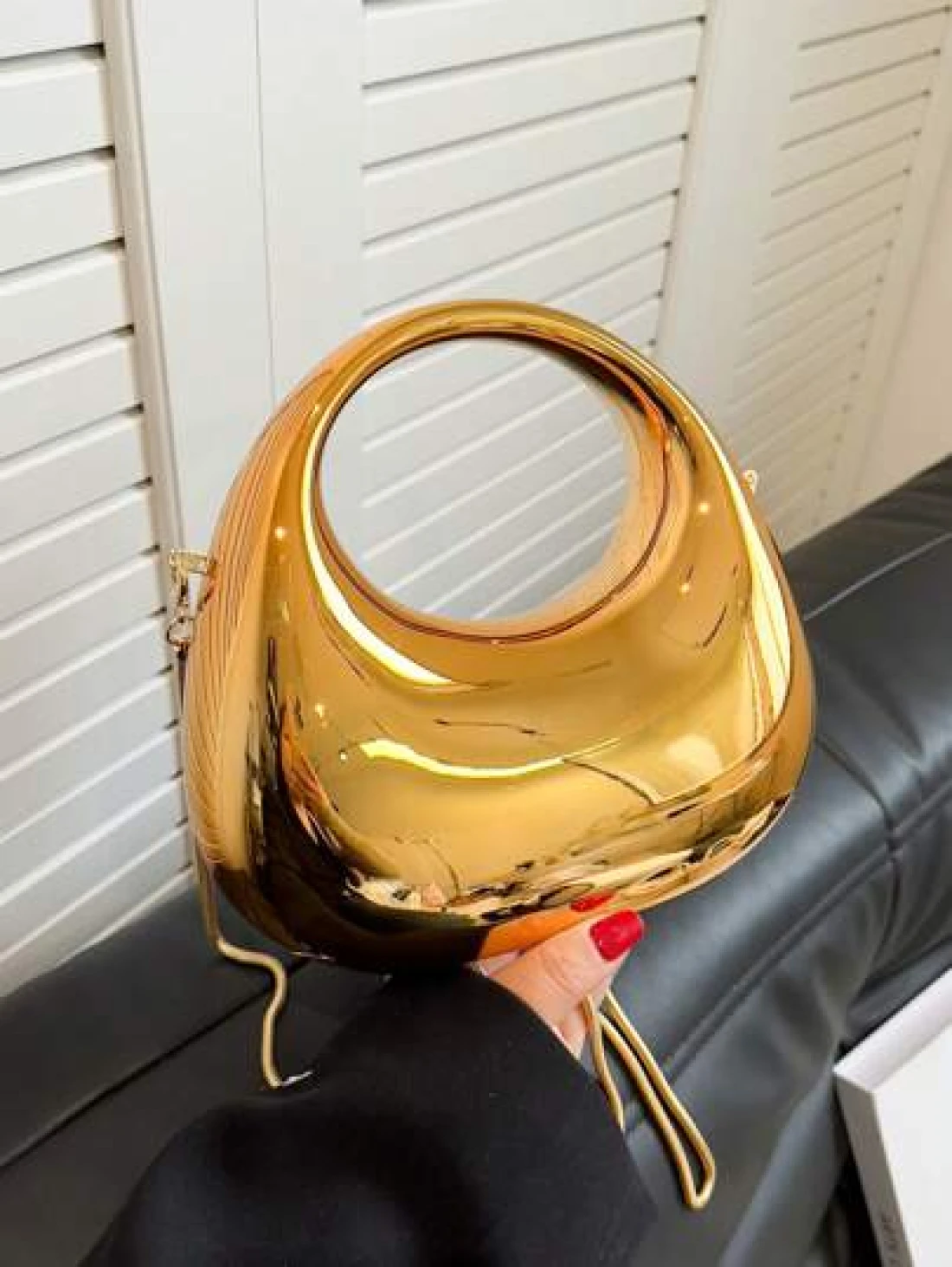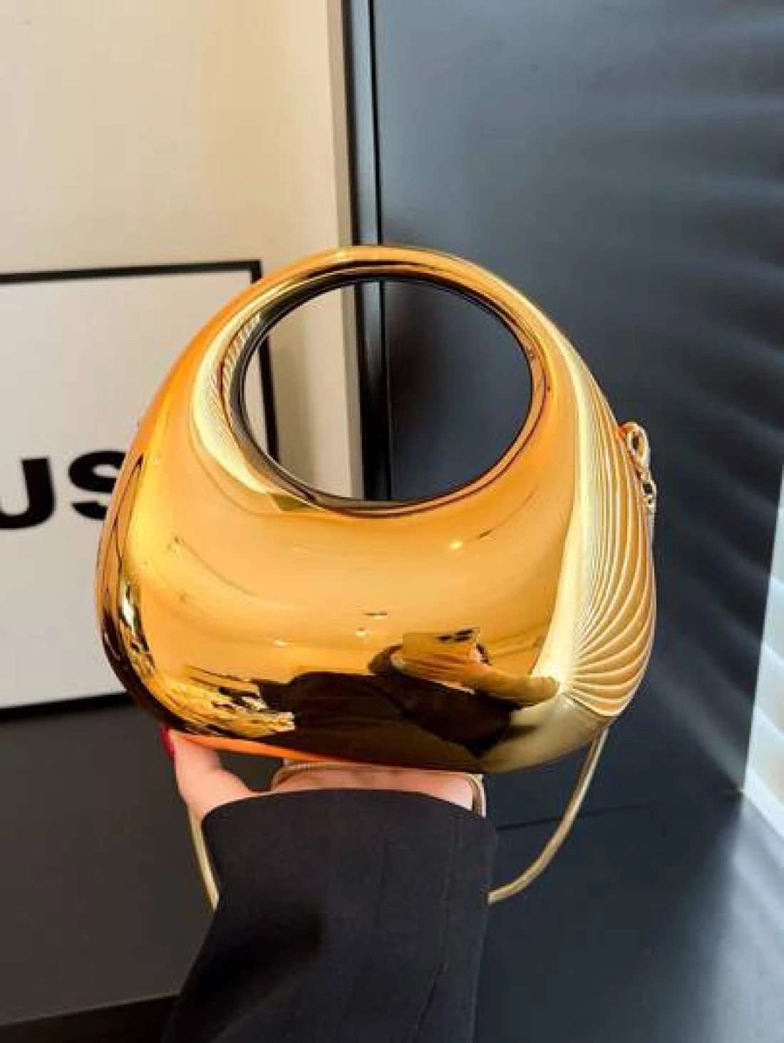 1pc New Arrival Golden Acrylic Clutch Bag Fashionable Personalized Handbag For Evening Party With Light Silver Color Moon Shaped Glittering Surface Detachable Metallic Chain Strap For Crossbody Wearing Fashionable Gift For Fashionable Ladies Futuristic Metallic Colored Purse Funky Punk Bag For Street Wear
