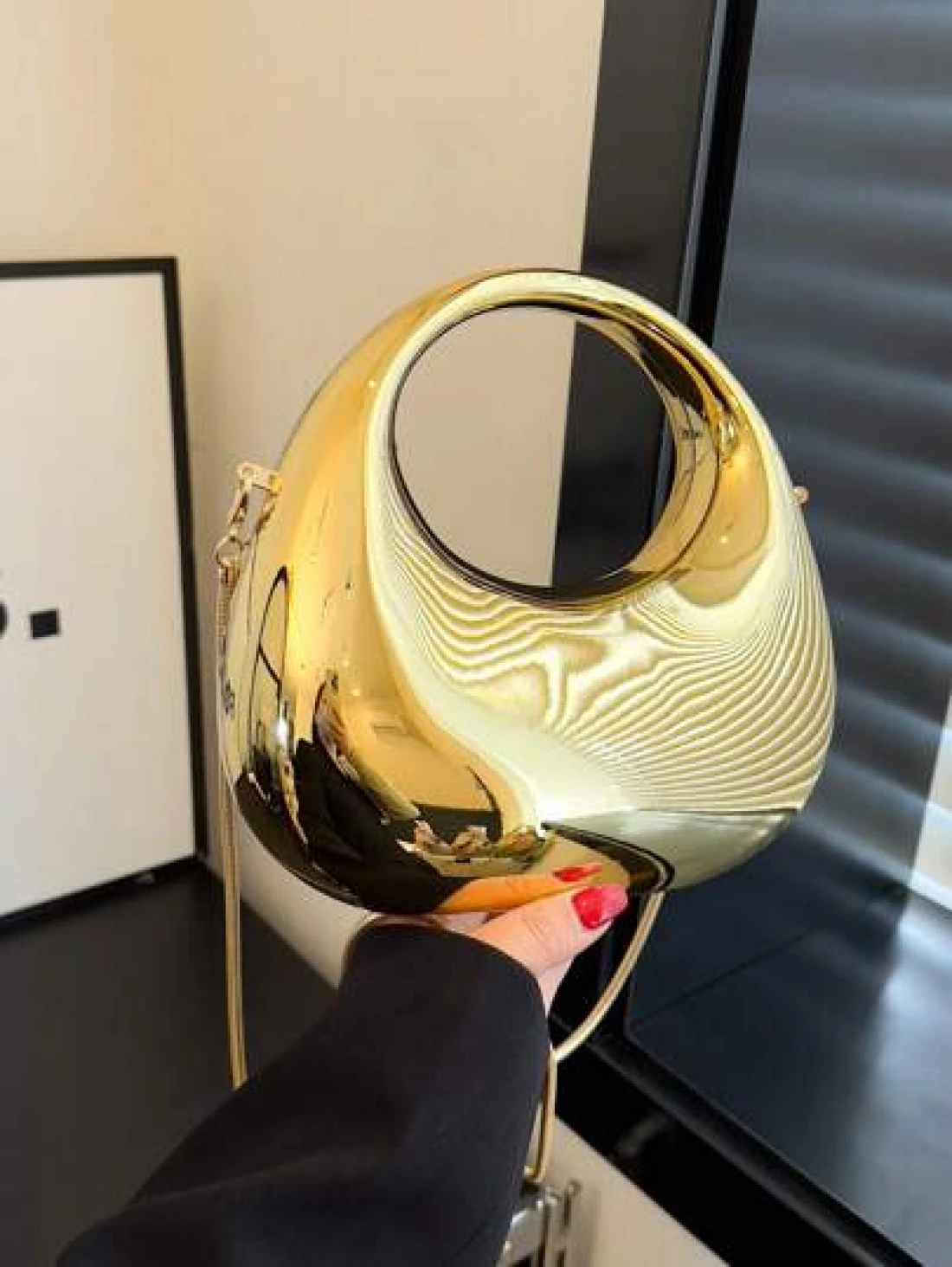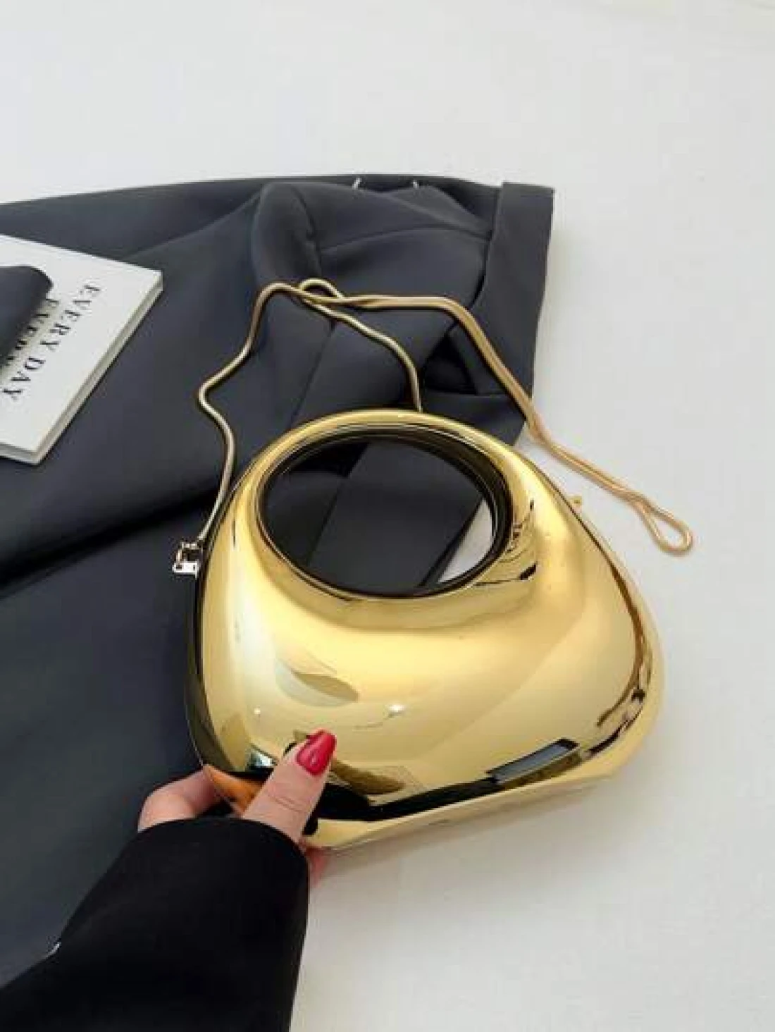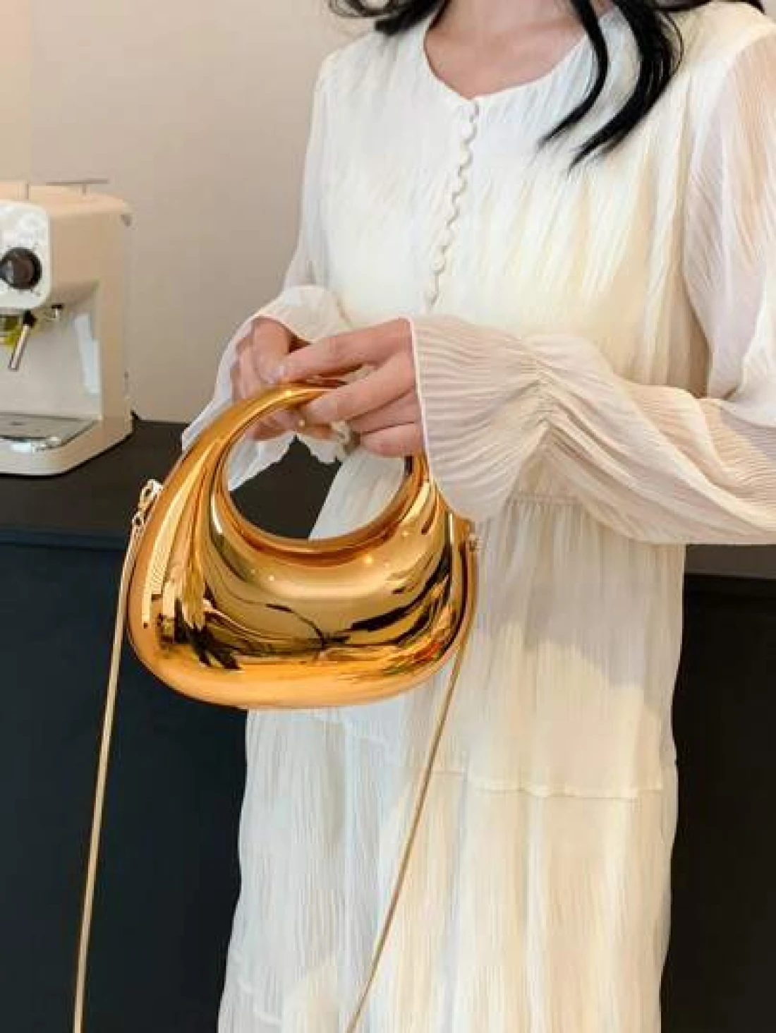 1pc New Arrival Golden Acrylic Clutch Bag Fashionable Personalized Handbag For Evening Party With Light Silver Color Moon Shaped Glittering Surface Detachable Metallic Chain Strap For Crossbody Wearing Fashionable Gift For Fashionable Ladies Futuristic Metallic Colored Purse Funky Punk Bag For Street Wear