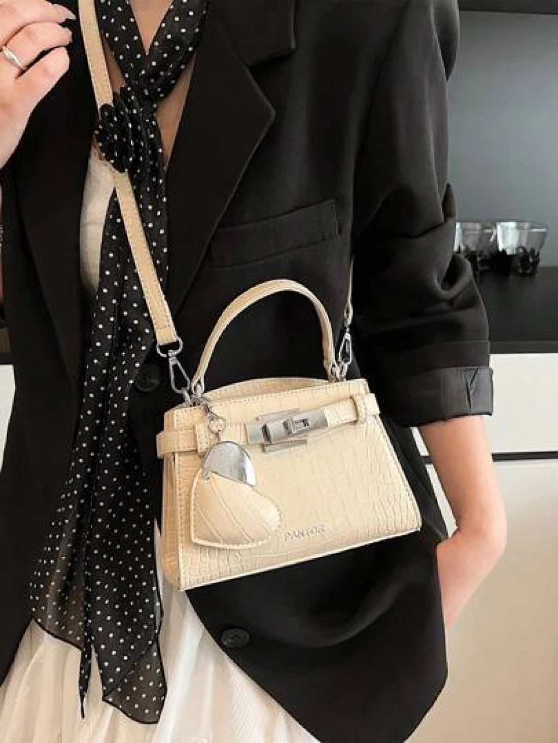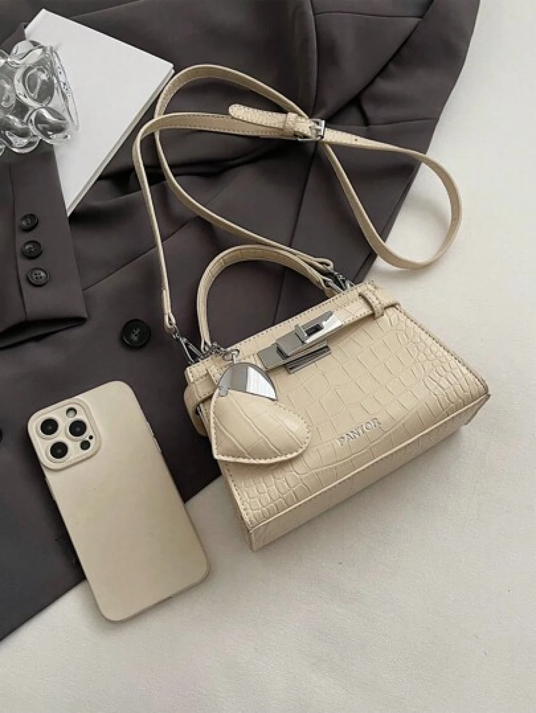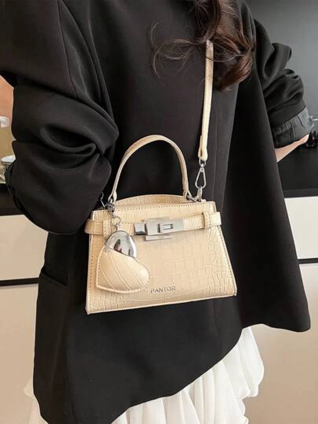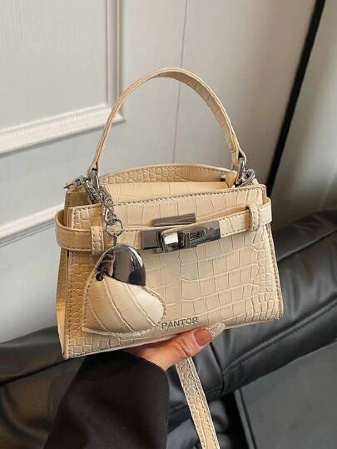 High End Crocodile Pattern Ladies Handbag High End Simple Letter Decoration Adjustable Shoulder Strap Messenger Bag Fashionable Strap Hardware Decoration Shoulder Commuter Bag Magnetic Buckle Opening And Closing Multifunctional Lightweight Storage Messenger Bag Love Pendant Decoration Design Handbag Suitable For Giving To Friends Shopping Dating Business Trip Travel And Vacation