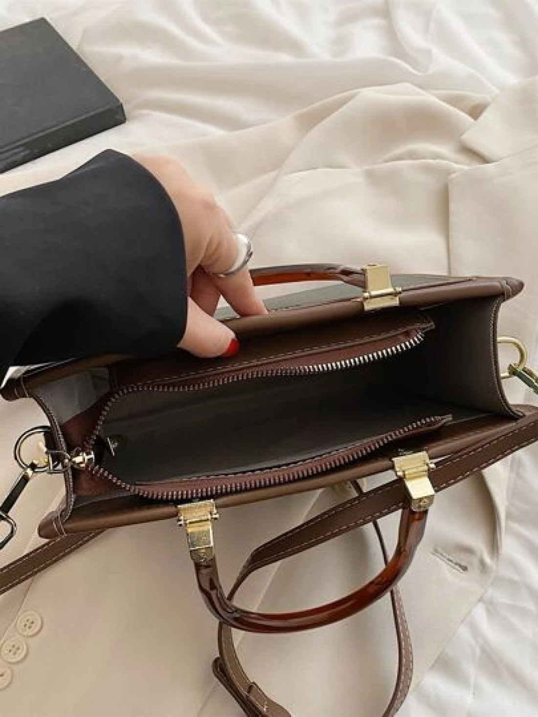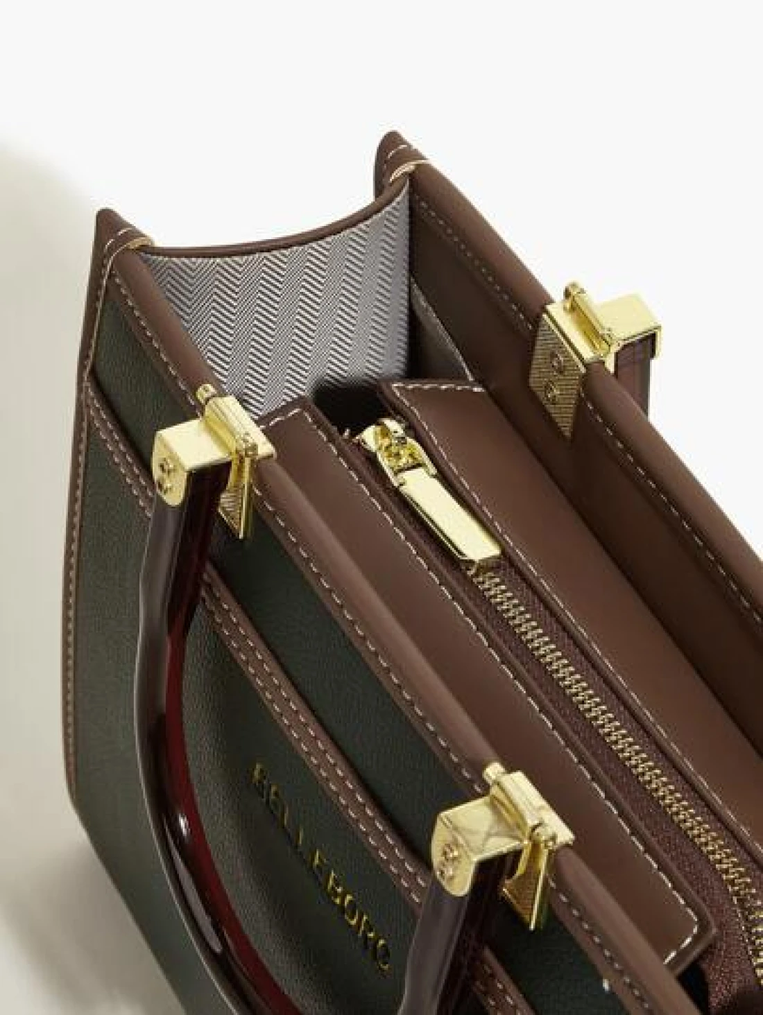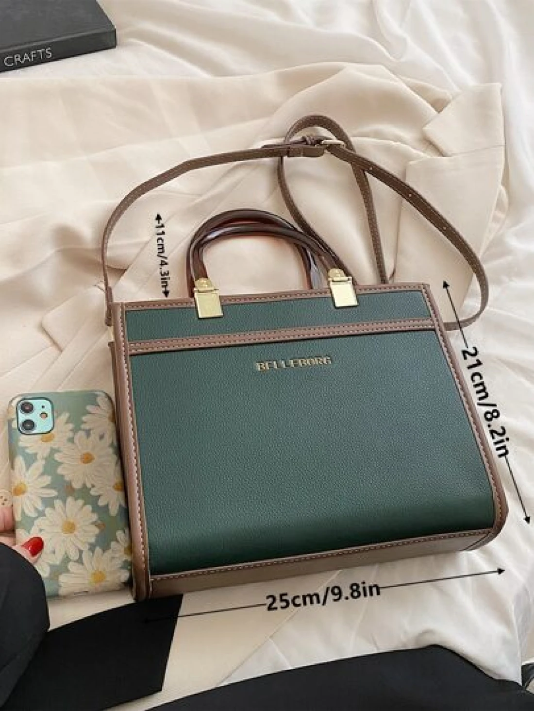 BELLEBORG Old Moeny Lightweight Business Casual Litchi Embossed Letter Detail Square Bag For Women Rookies White Collar Workers For Teen Girls Women College Students Rookies White Collar Workers Perfect For Office College Work Business Commute Outdoors Travel Outings