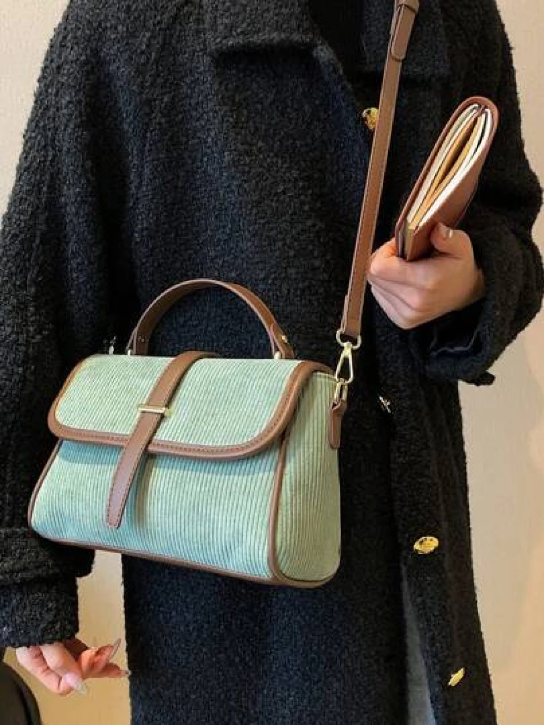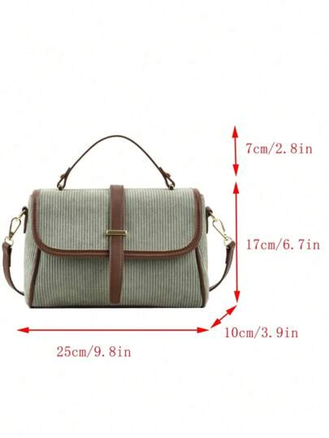 Corduroy Flap Good Quality With PU Leather Handbag Women s Bag Adjustable Crossbody Bag