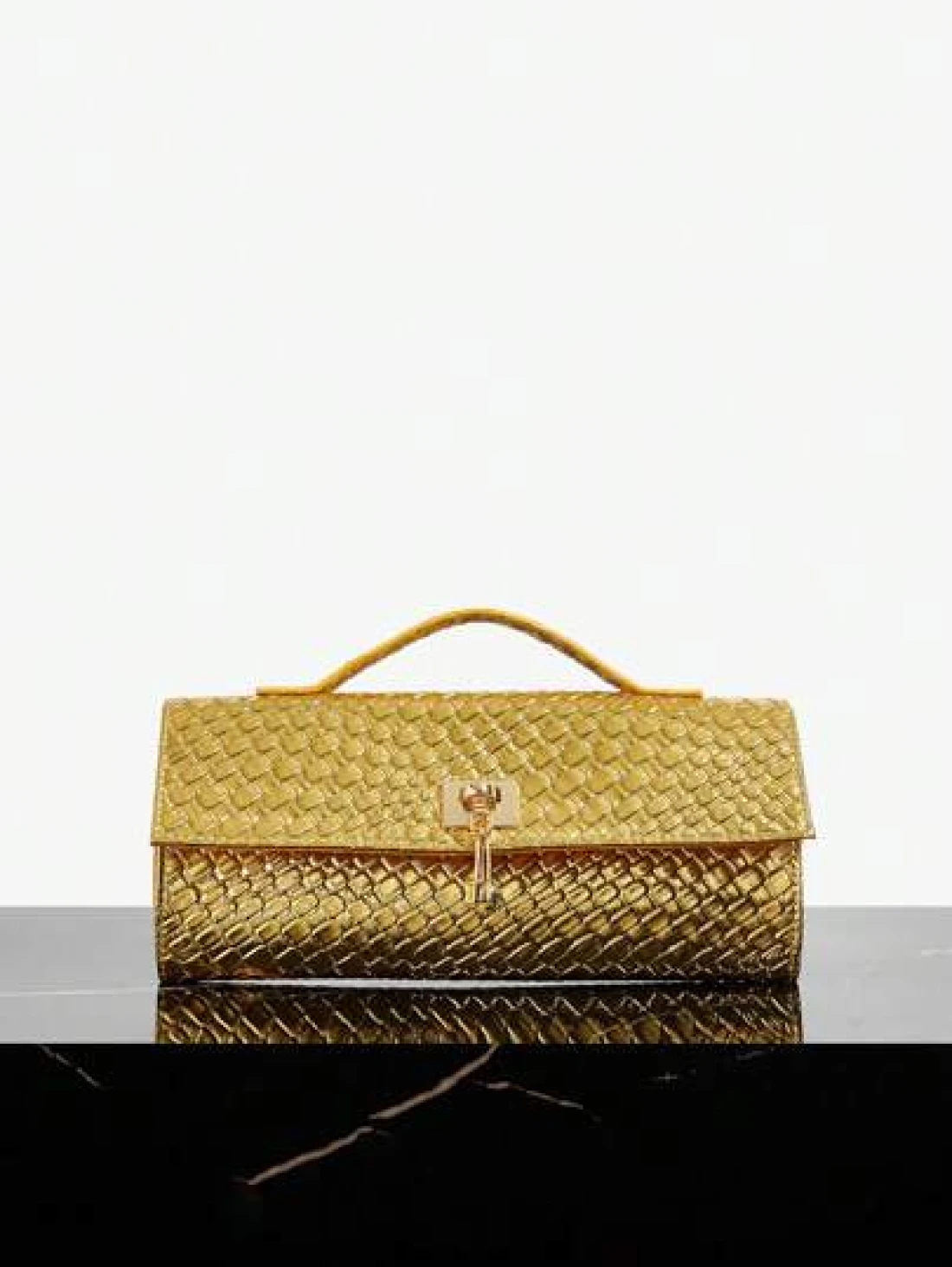 SHEIN SXY Ladies Women Top Handle Bags Woven Bag Fashionable Simple Elegant Versatile Classic Gold For Classic Commute Office Date Daily Shopping Afternoon Tea Party Prom Club Date Birthday Evening Date Night Valentines