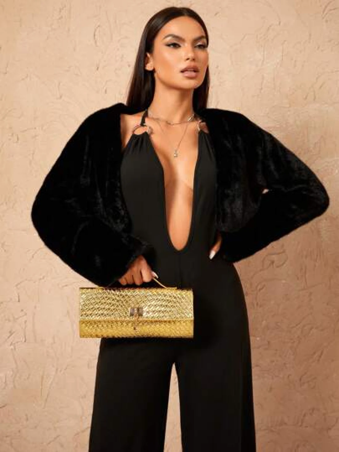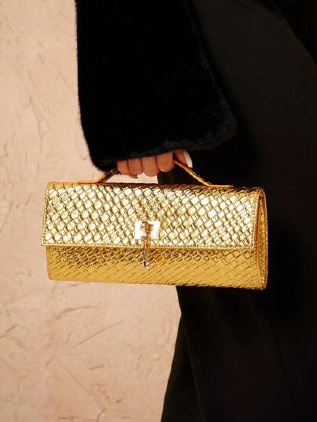 SHEIN SXY Ladies Women Top Handle Bags Woven Bag Fashionable Simple Elegant Versatile Classic Gold For Classic Commute Office Date Daily Shopping Afternoon Tea Party Prom Club Date Birthday Evening Da