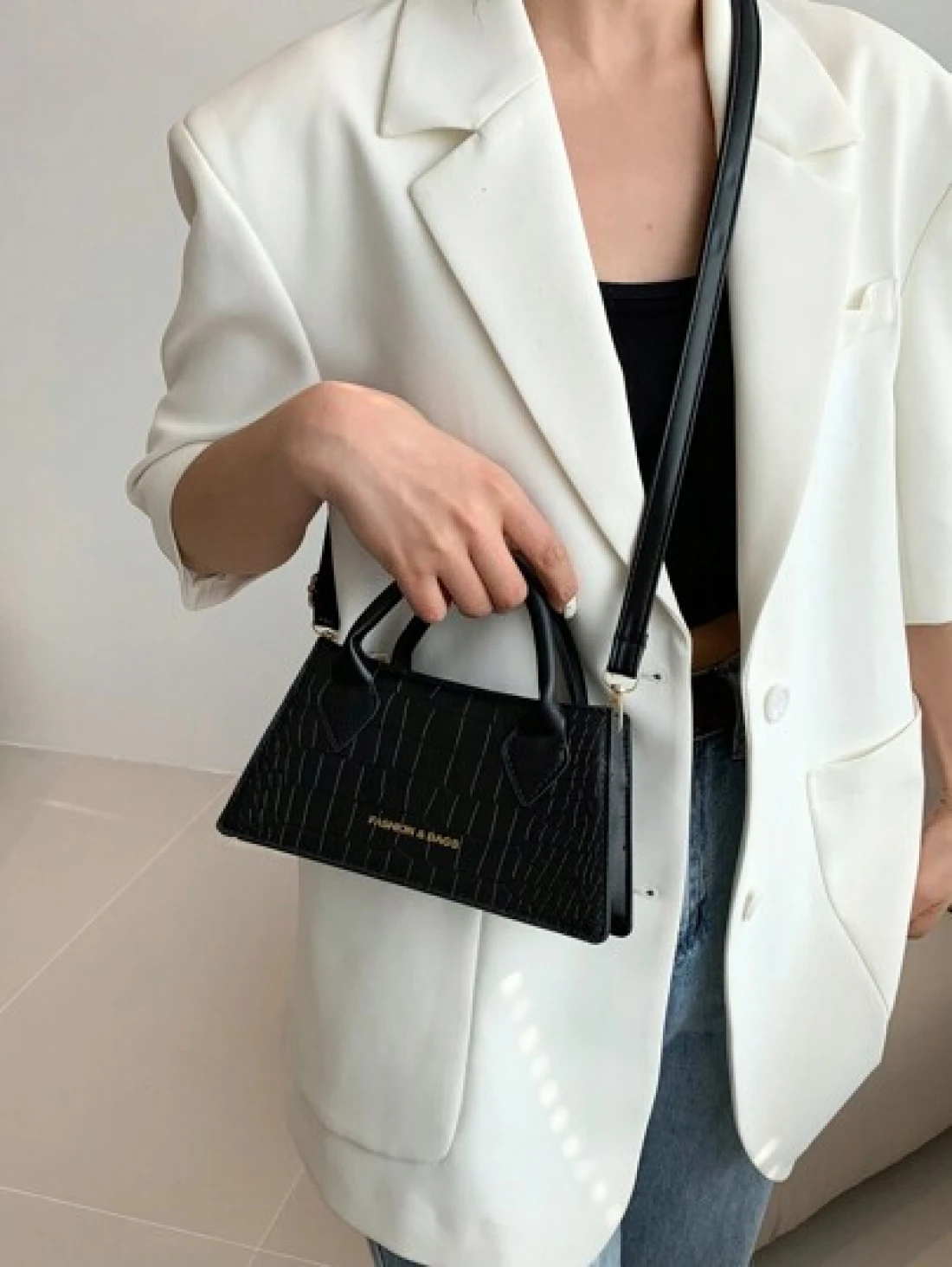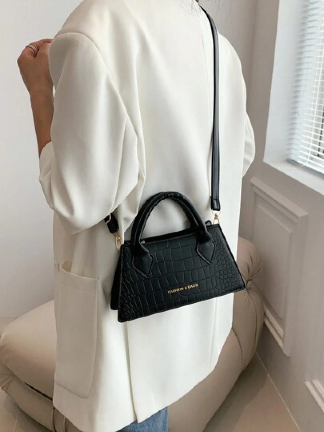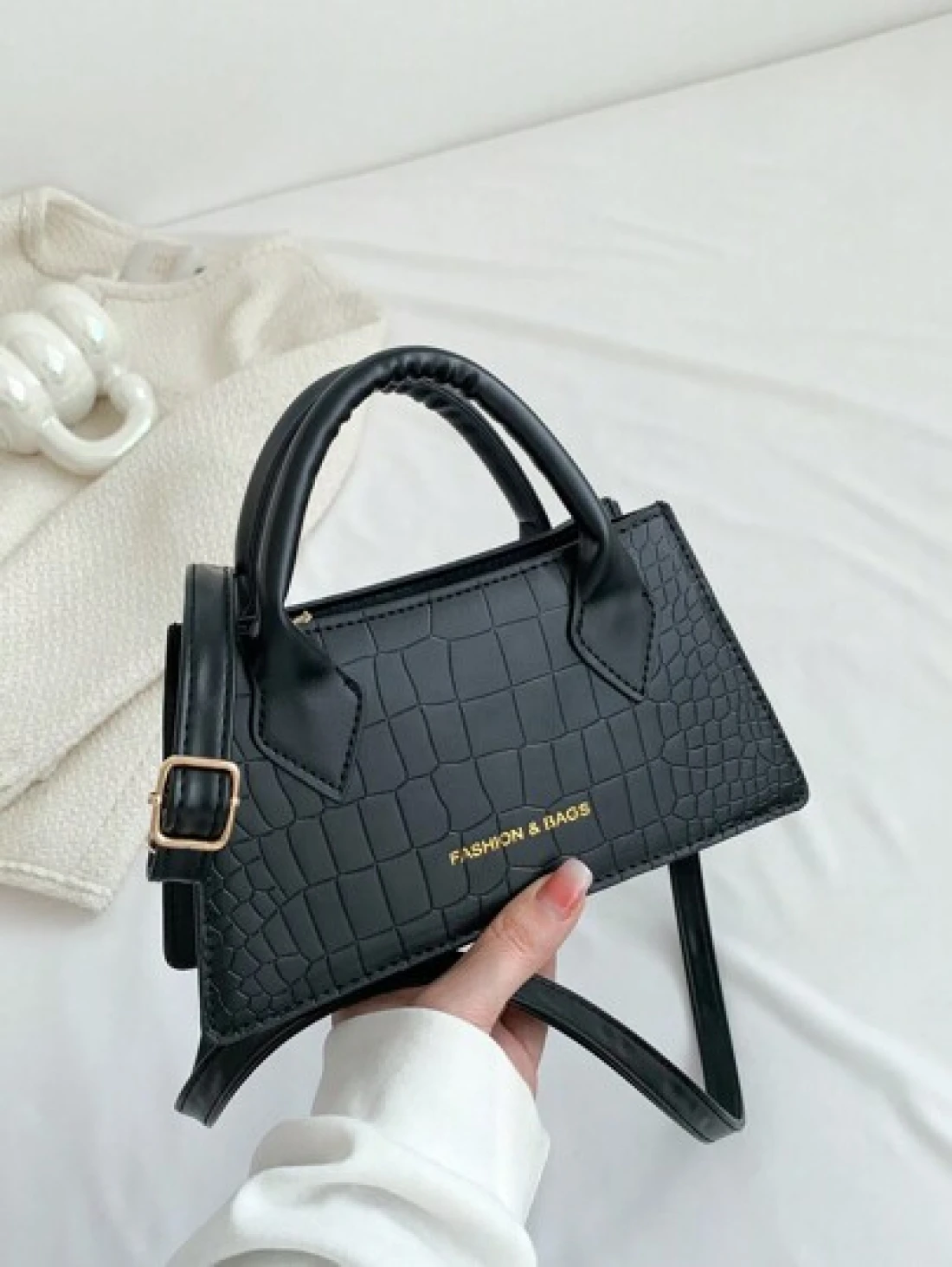 Lightweight Business Casual Small Square Bag Double Handle Crocodile Embossed Letter Pattern For Teen Girls Women College Students Rookies White Collar Workers Perfect For Office College Work Business Commute Outdoors Travel Outings