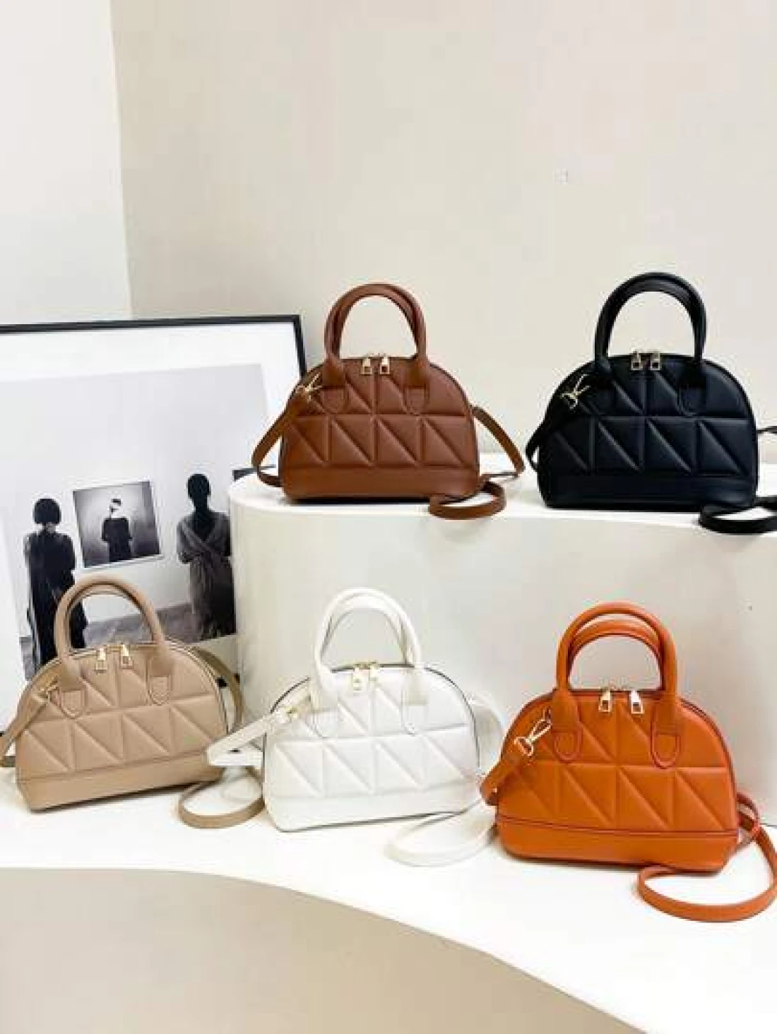 Classic Fashion Solid Color Quilted PU Leather Tote Bag Women s Versatile Dome Top Handle Crossbody Bag Simple Travel Vacation Handbag With Adjustable Shoulder Strap Business Commuting Briefcase Shoulder Bags