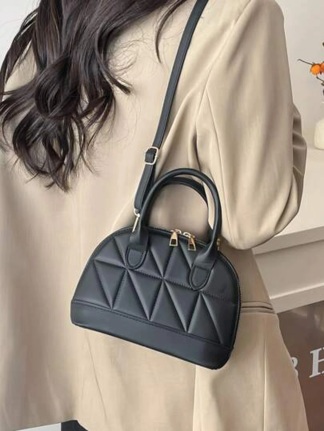 Classic Fashion Solid Color Quilted PU Leather Tote Bag Women s Versatile Dome Top Handle Crossbody Bag Simple Travel Vacation Handbag With Adjustable Shoulder Strap Business Commuting Briefcase Shoul