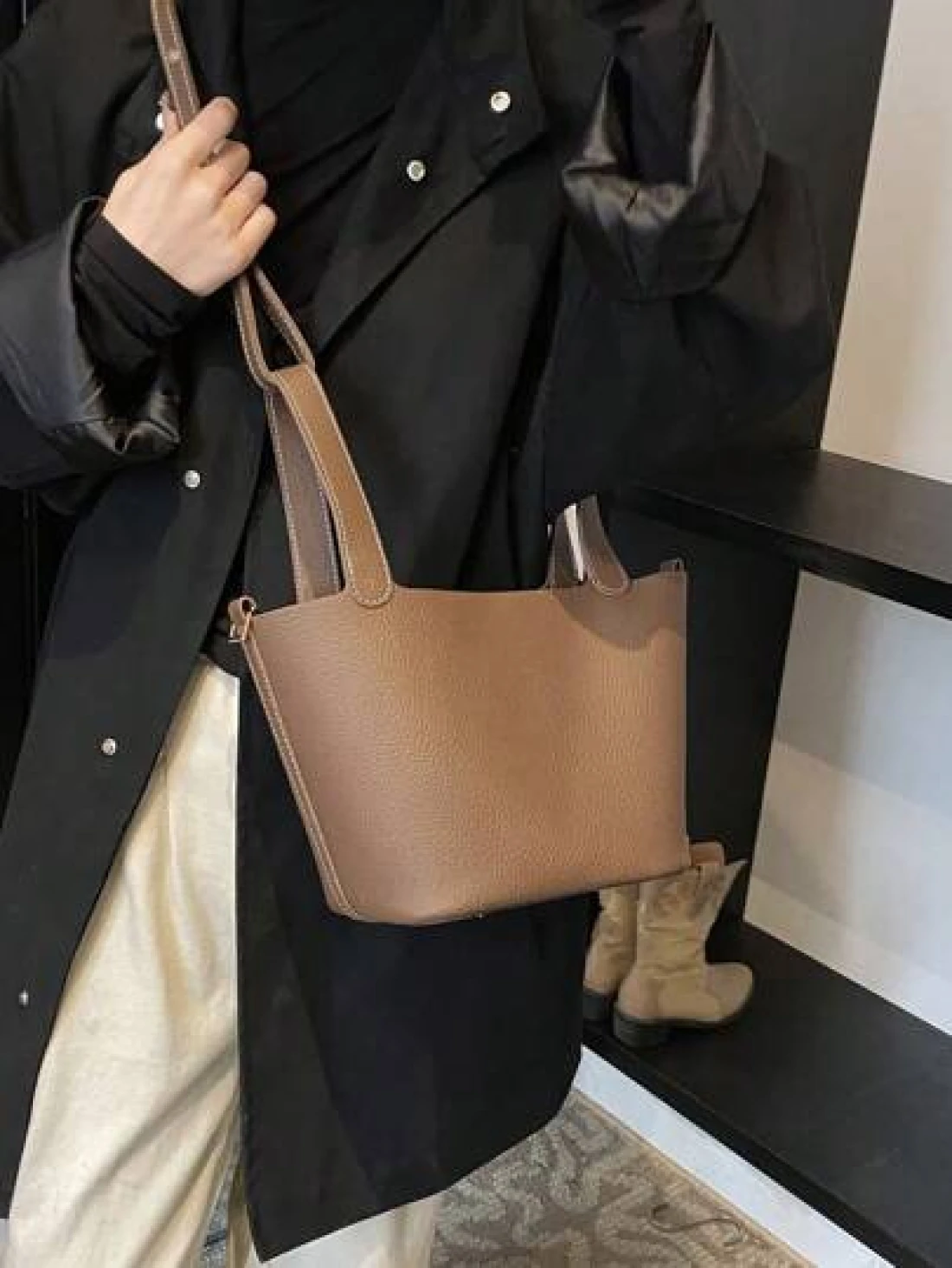 1 Piece Women s New Retro Casual Versatile Solid Color Bucket Handbag Model In Autumn And Winter Suitable For Commuting Daily Dating And Work Women s Fashionable Handbag Can Be Cross Body