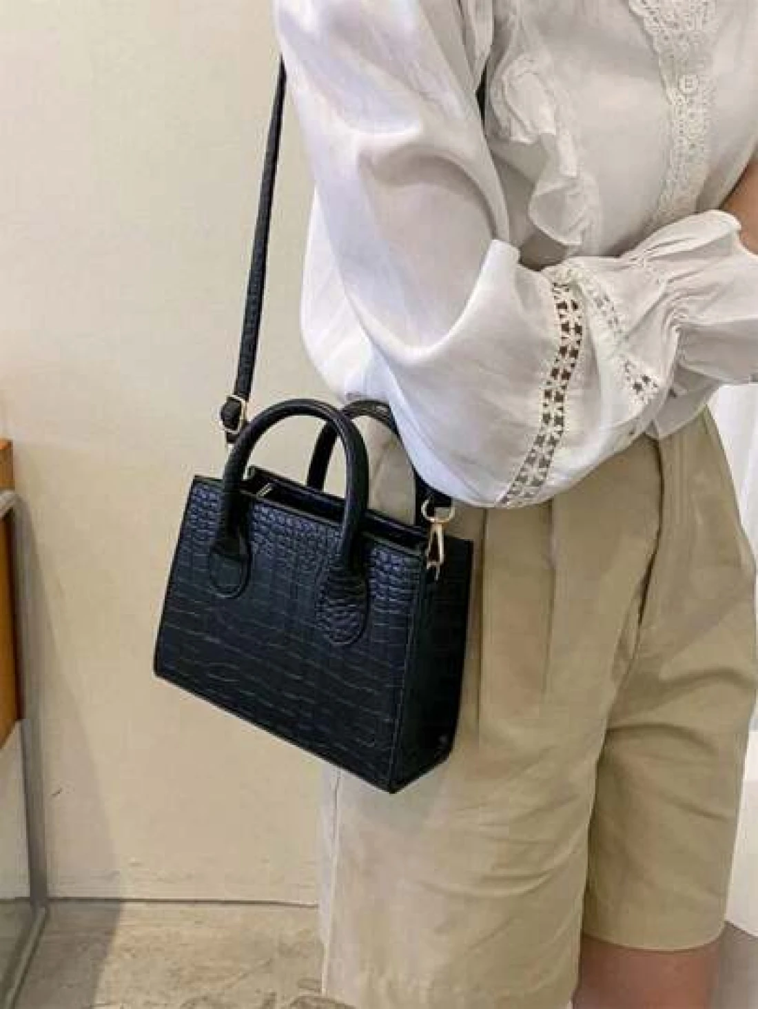 Lightweight Business Casual Crocodile Embossed Square Bag For Teen Girls Women College Students Rookies White Collar Workers Perfect For Office College Work Business Commute Outdoors Travel Outings