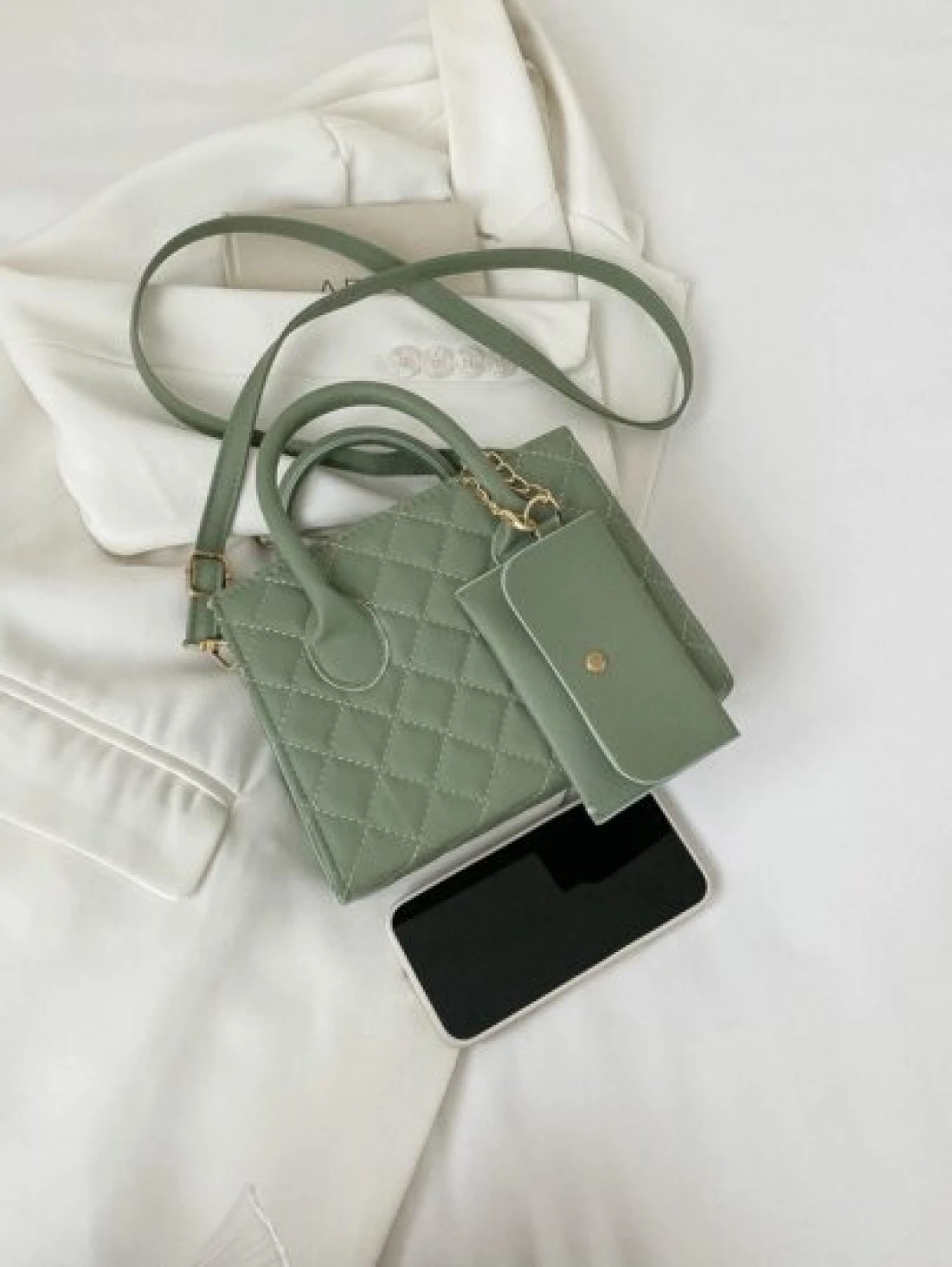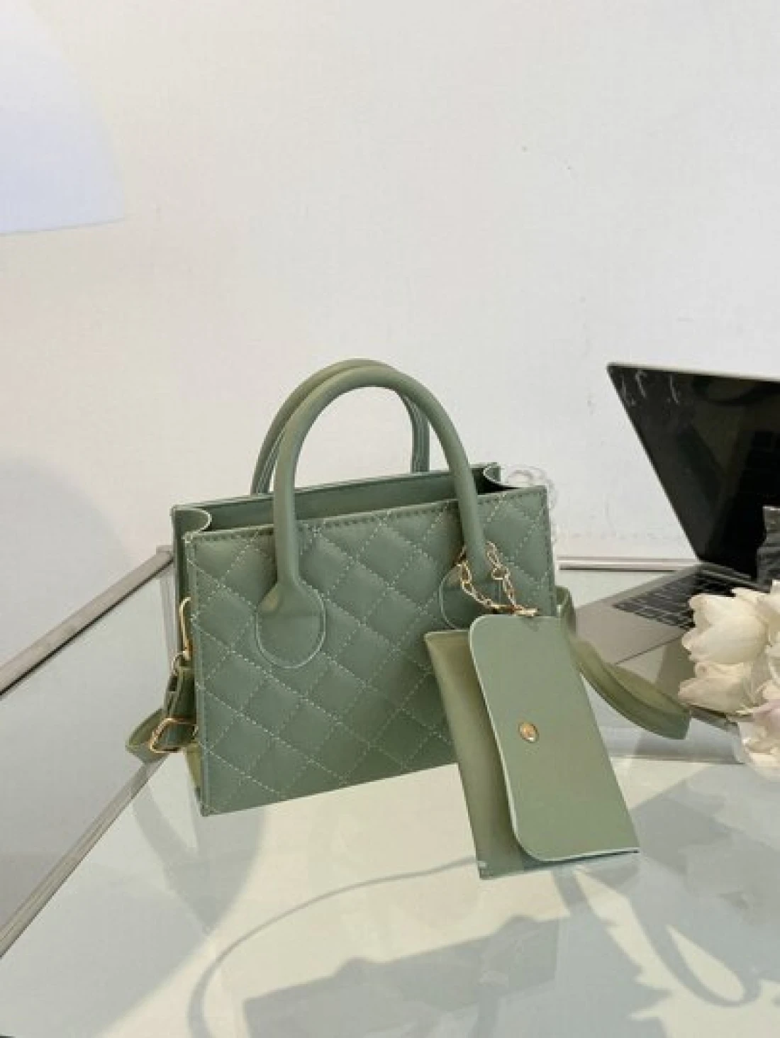 Lightweight Business Casual Argyle Quilted Double Handle Square Bag With Coin Purse For Teen Girls Women College Students Rookies White Collar Workers Perfect For Office College Work Business Commute