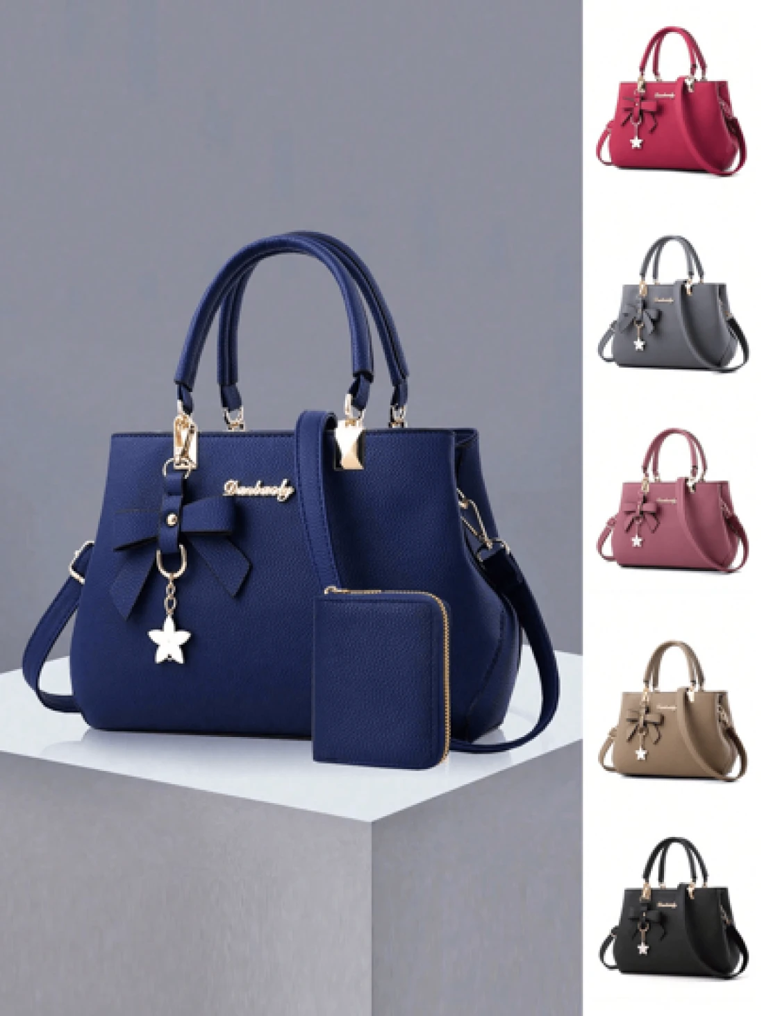 2pcs 1pc Women Solid Color Handbag Wallet Set With PU Leather Bow Pendant Zipper Closure Great Mother s Day Valentine s Day Gift Elegant Women Tote Bag Shoulder Bag Cross Body Bag Large Capacity Purse