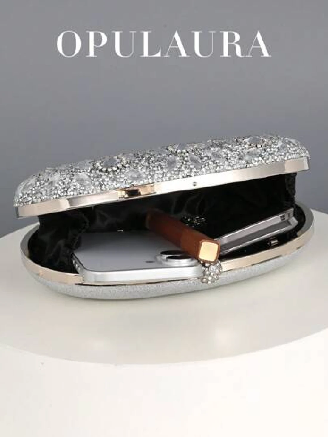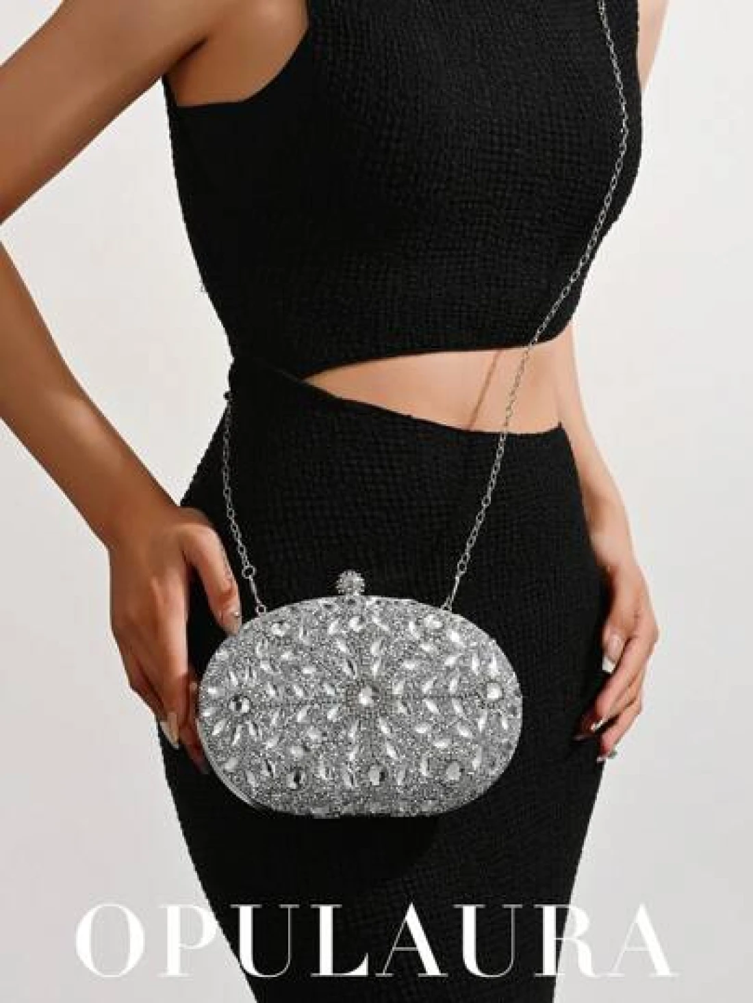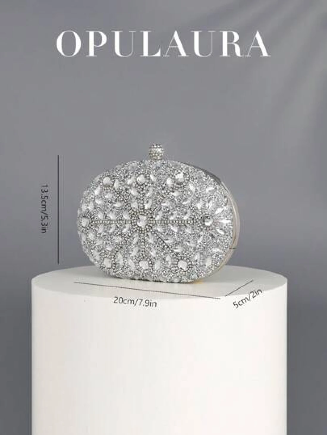 OpulAura Luxury Women s Sparkling Crystal Embellished Mini Box Clutch Bag Glamorous Rhinestone Evening Handbag Suitable For Formal Events Party Wedding With Detachable Chain Tready Party Bags Perfect