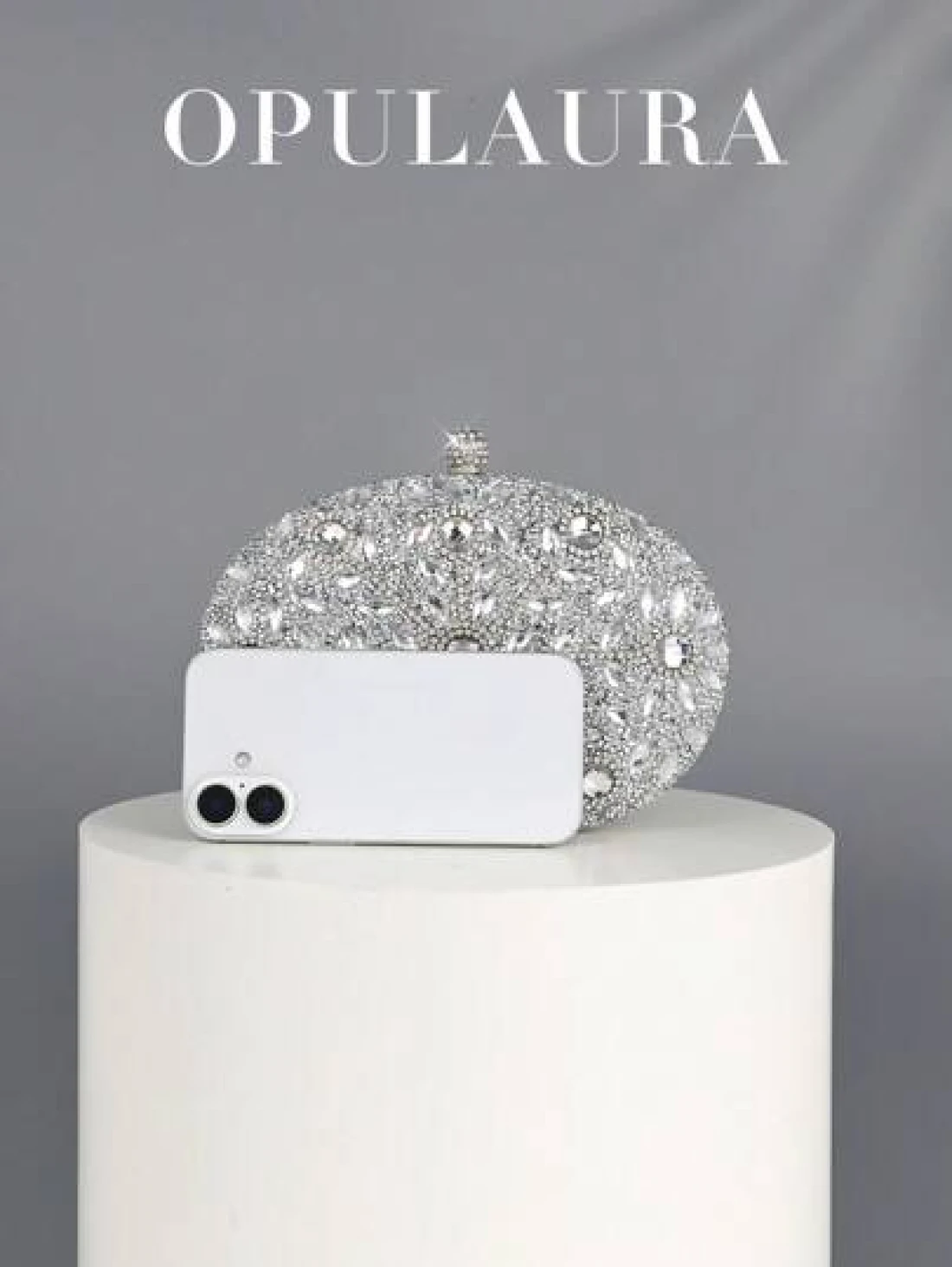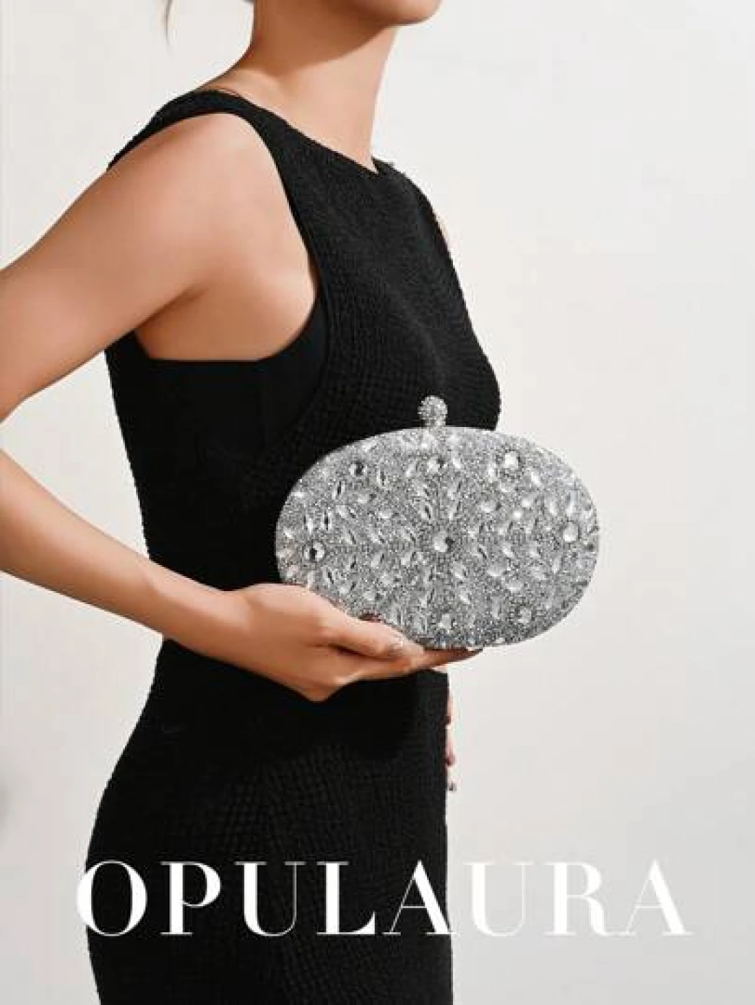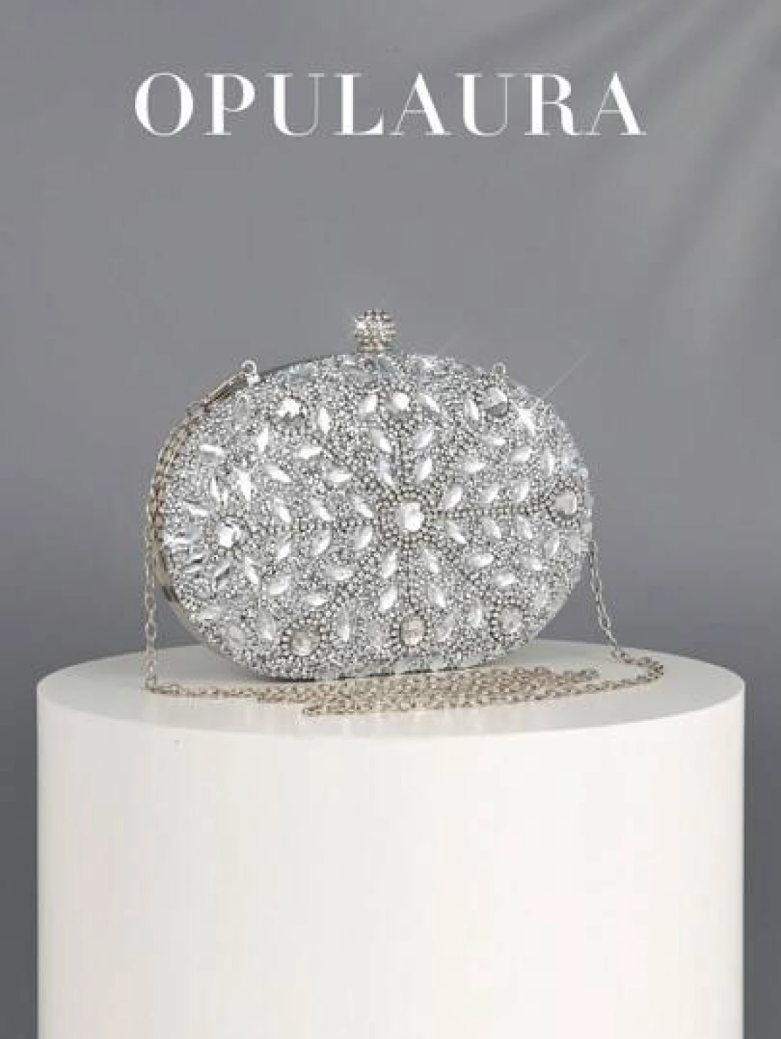 OpulAura Luxury Women s Sparkling Crystal Embellished Mini Box Clutch Bag Glamorous Rhinestone Evening Handbag Suitable For Formal Events Party Wedding With Detachable Chain Tready Party Bags Perfect